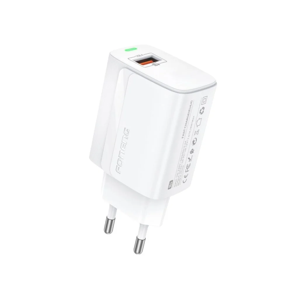 FONENG hálózati töltő EU64 18W 1xUSB QC3.0 + kábel Lightning Fehér