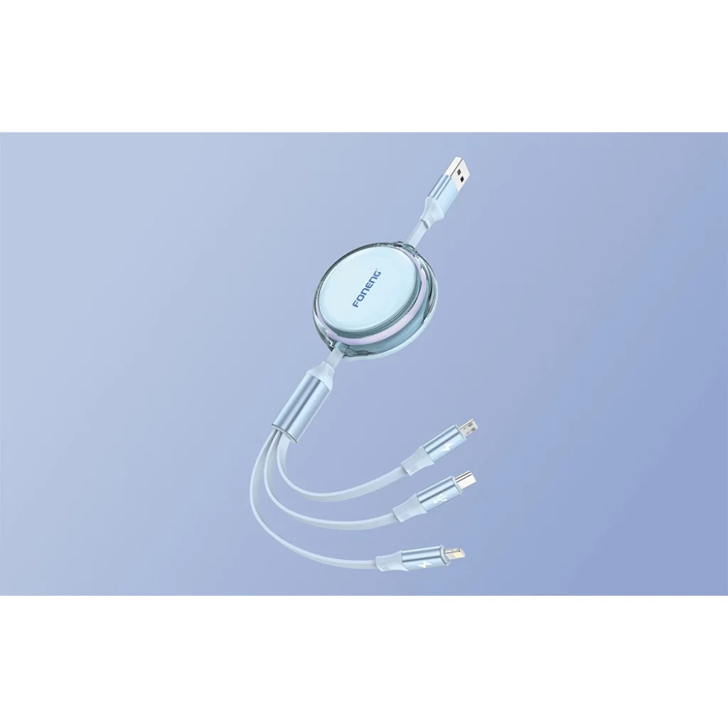 A Foneng X113 kábel teleszkópos, kétfokozatú kialakítással rendelkezik, amely mindkét irányban kényelmes skálázást tesz lehetővé. Ez lehetővé teszi, hogy a kábelt az Ön igényeihez igazítsa, optimális hosszúságot és kényelmet biztosítva. Támogatja a három különböző interfésszel rendelkező eszközök töltését: (2,1A), Lightning (2,4A) és Type-C (3A). Az adatátvitelt is támogatja, így ideális választás azok számára, akik sebességet és funkcionalitást keresnek egyben.