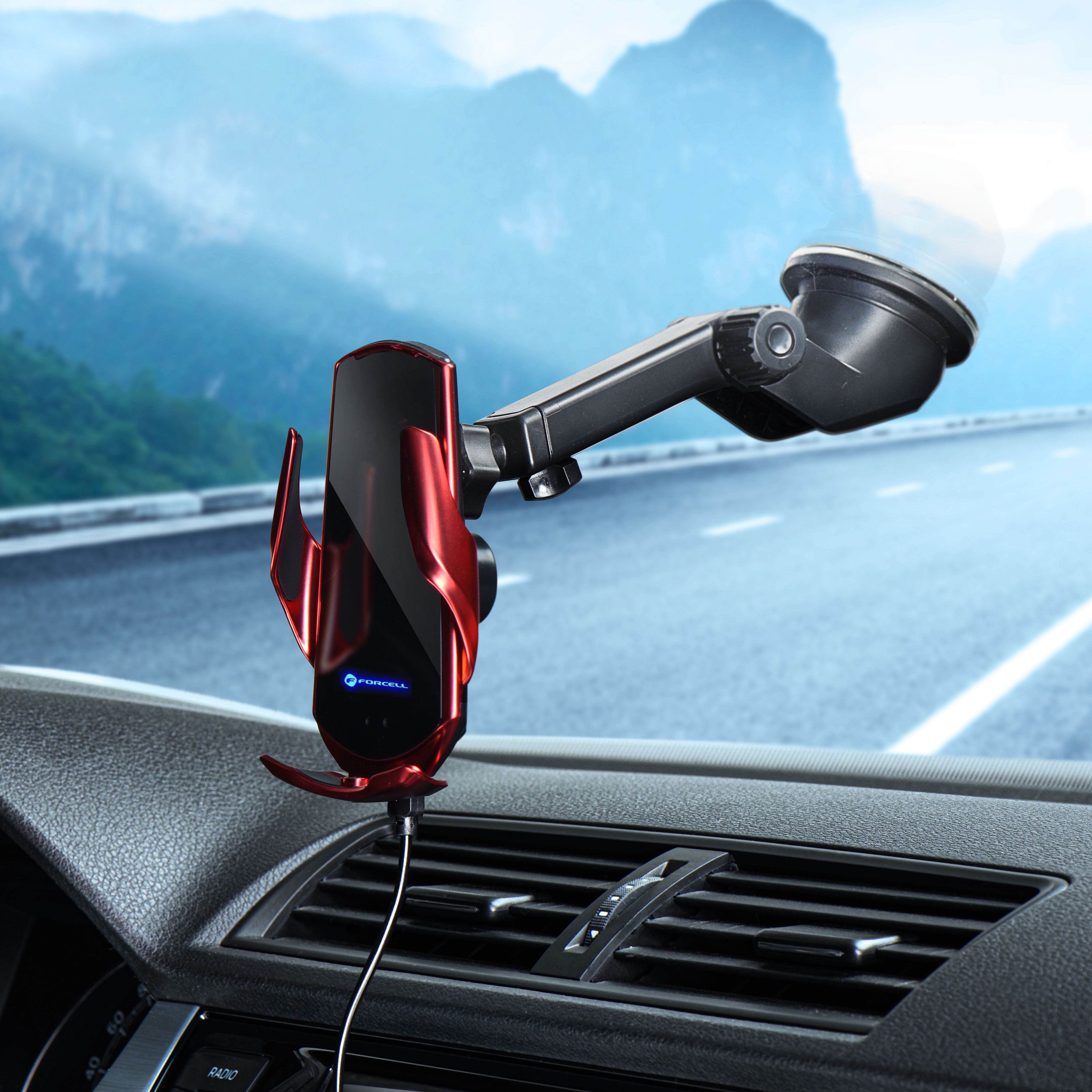 Automatikus autós tartó vezeték nélküli töltéssel és infravörös érzékelővel. Automatikusan nyitja és zárja a karokat. Támogatja az induktív töltést. A beépített infravörös érzékelőnek köszönhetően a tartó automatikusan felismeri a készüléket, amikor az közel van a kiegészítőhöz (5-20 cm), majd automatikusan nyitja és zárja a karokat, amikor a telefon a tartóban van. A tartó támogatja a gyors vezeték nélküli töltést. Azokhoz a készülékekhez, amelyek nem támogatják az induktív töltéstechnológiát, használhatók a mellékelt mágneses tippek. A termék beépített védelmi rendszerrel rendelkezik: túlfeszültség, túlmelegedés, mágneses mező, rövidzárlat ellen véd. A levegőbeömlőre vagy a szélvédőre szerelhető.