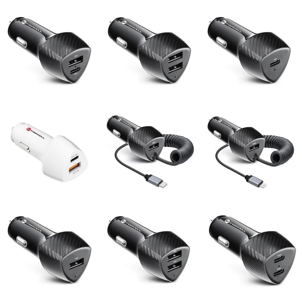 Fedezze fel a hatékony és biztonságos töltés új szintjét utazásai során a FORCELL CARBON autós töltővel! Ez a prémium kategóriás, kettős Type-C porttal rendelkező töltő úgy lett tervezve, hogy lépést tartson az Ön dinamikus életmódjával, miközben maximális védelmet nyújt eszközeinek. Ne aggódjon többé a lemerült akkumulátorok miatt – a FORCELL CARBON segítségével mindig kapcsolatban maradhat, bárhová is vezet az útja.