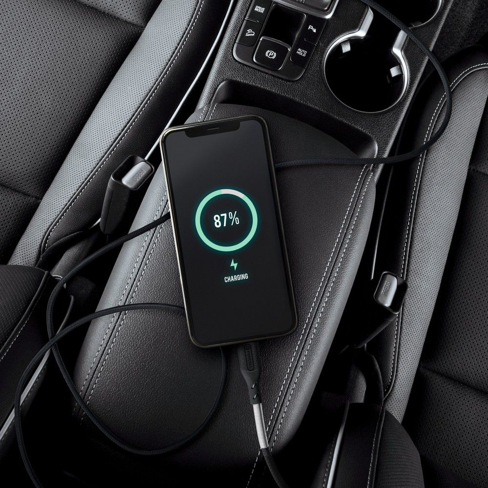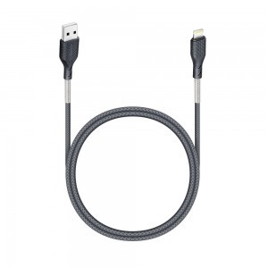 Erős multimédiás kábel töltéshez és adatátvitelhez. Támogatja az Apple CarPlay-t. A dugók végei fémfonattal erősítettek meg. A maximális teljesítmény 12 W.