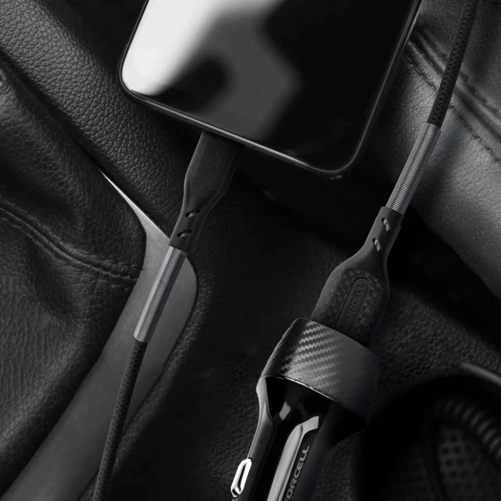 Erős multimédiás kábel töltéshez és adatátvitelhez. Támogatja az Apple CarPlay-t. A dugók végei fémfonattal erősítettek meg. A maximális teljesítmény 12 W.