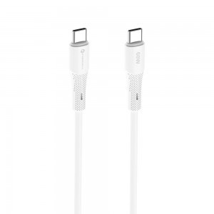 Univerzális USB-C kábel 60 W-os nagy teljesítménnyel, amely lehetővé teszi az okostelefonok, tabletek és laptopok gyors és biztonságos töltését. Puha, rugalmas szilikonból készült, amely megakadályozza a gubancolódást, és egyedi textúrája növeli a használat kényelmét.