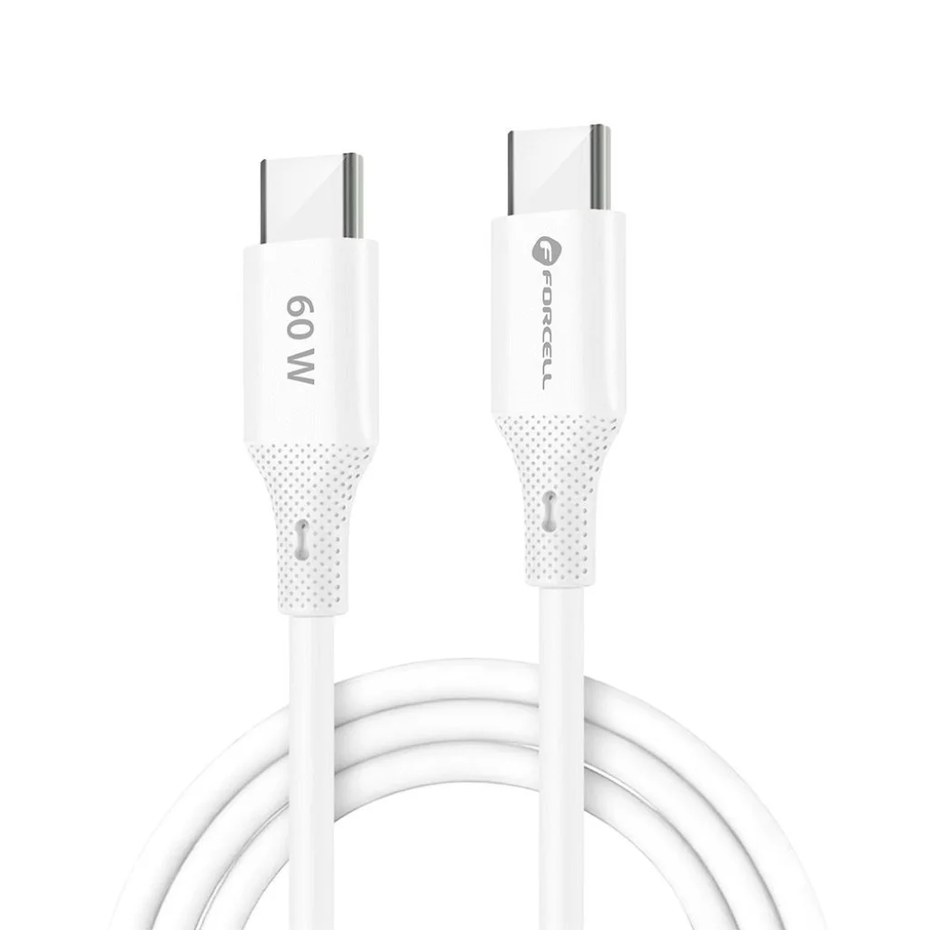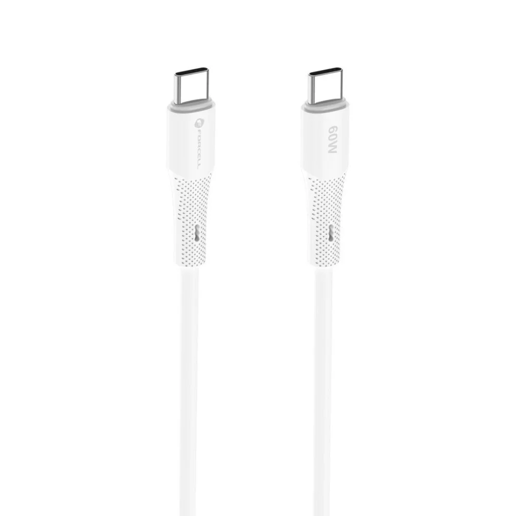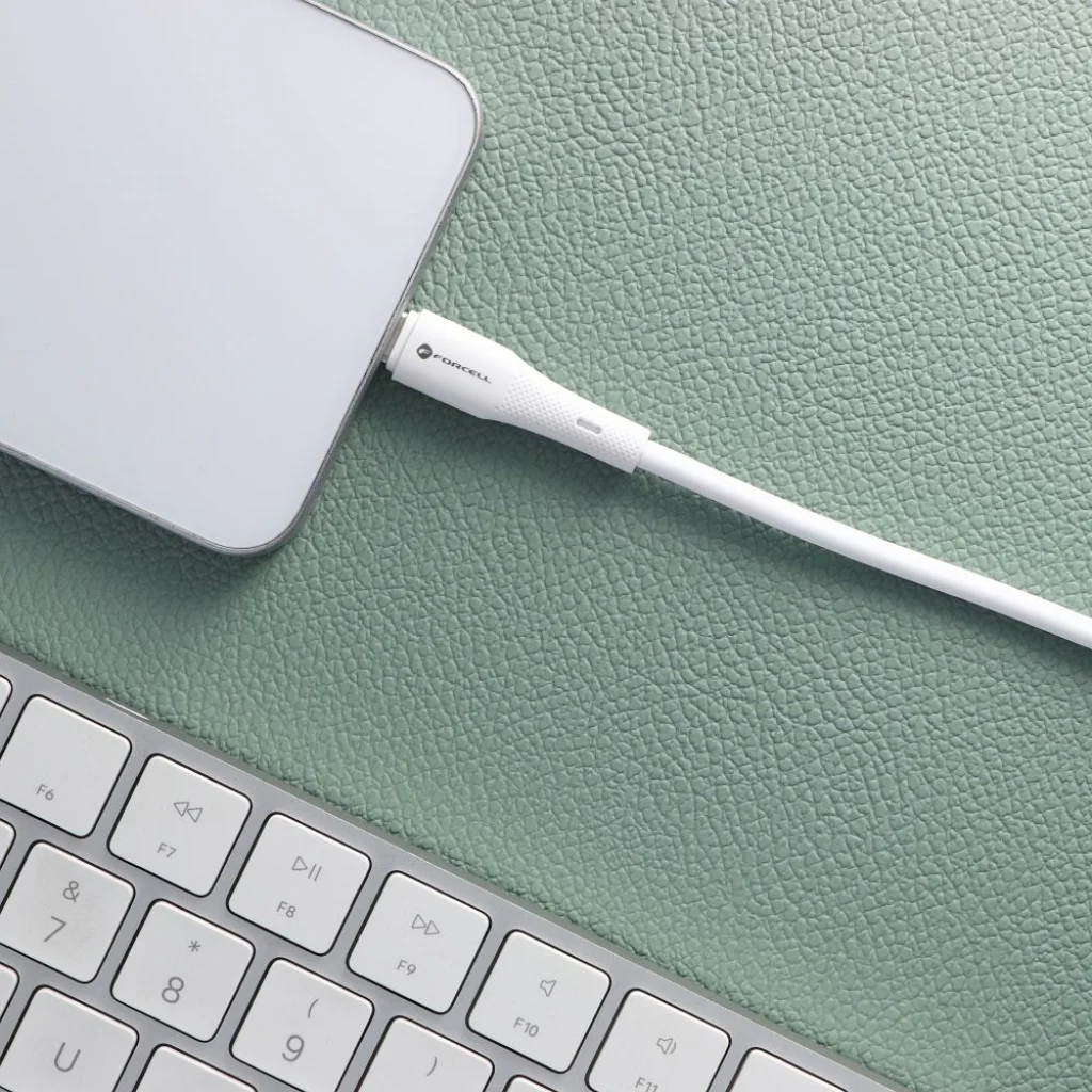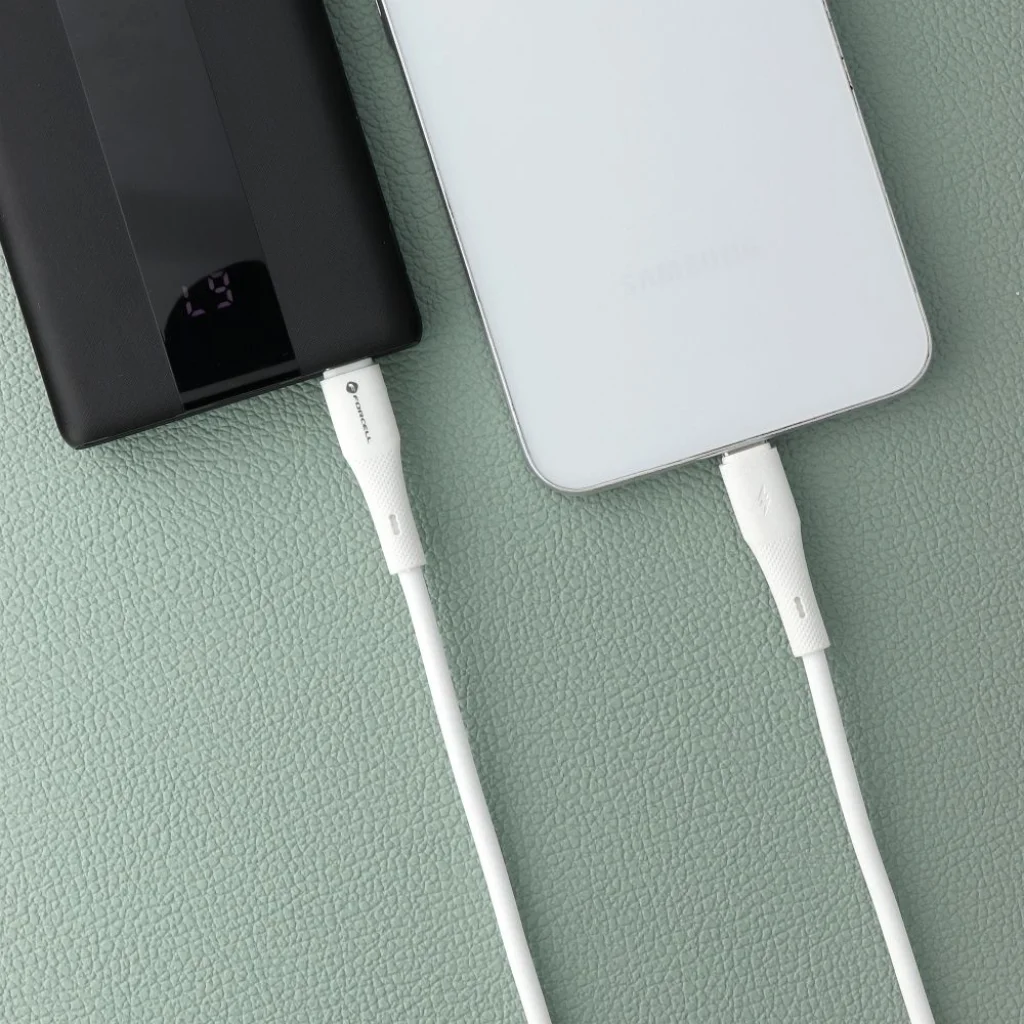Univerzális USB-C kábel 60 W-os nagy teljesítménnyel, amely lehetővé teszi az okostelefonok, tabletek és laptopok gyors és biztonságos töltését. Puha, rugalmas szilikonból készült, amely megakadályozza a gubancolódást, és egyedi textúrája növeli a használat kényelmét.