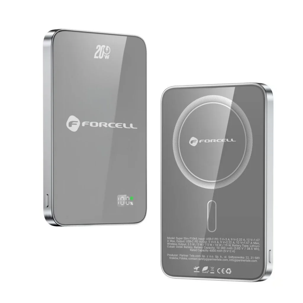 Fedezze fel a FORCELL F-ENERGY F5K8 Super Slim powerbankot, a tökéletes társat, amelyet kifejezetten az Apple eszközök – iPhone, Apple Watch és AirPods – felhasználói számára terveztek, de univerzális töltési megoldást kínál más okostelefonok számára is. Ez az ultravékony, MagSafe kompatibilis hordozható töltő nem csupán stílusos, hanem rendkívül funkcionális is, prémium anyagokból készült, és a legmodernebb gyorstöltési technológiákat támogatja, maximális kényelmet biztosítva útközben.