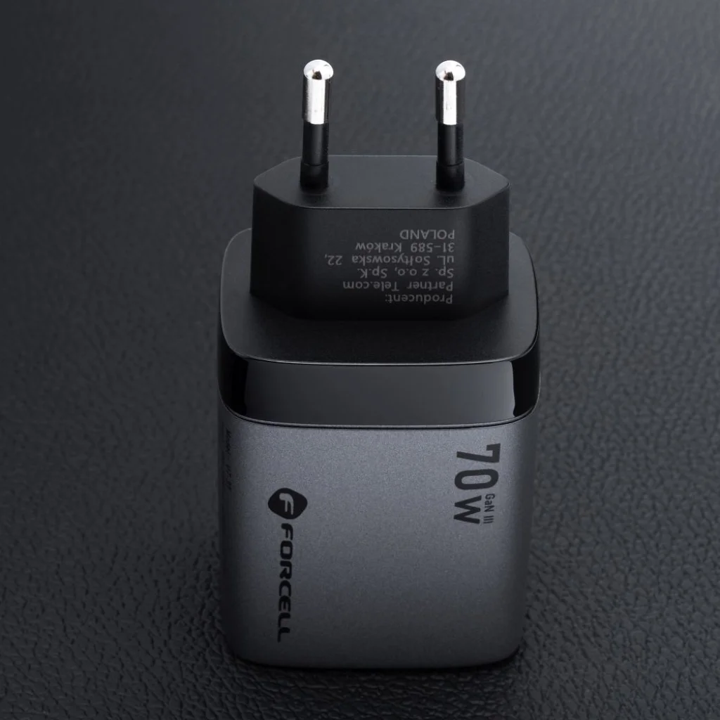 A fali töltő GaN III technológiával készült, és összteljesítménye 70 W. Tartalmazza a Quick Charge 4.0, Power Delivery és Szuper Gyors Töltés 2.0 technológiákat, amelyek lehetővé teszik a telefonok, tabletek és laptopok gyors töltését. Három porttal rendelkezik - két USB-C és egy USB-A - és egyszerre három eszközt képes tölteni.