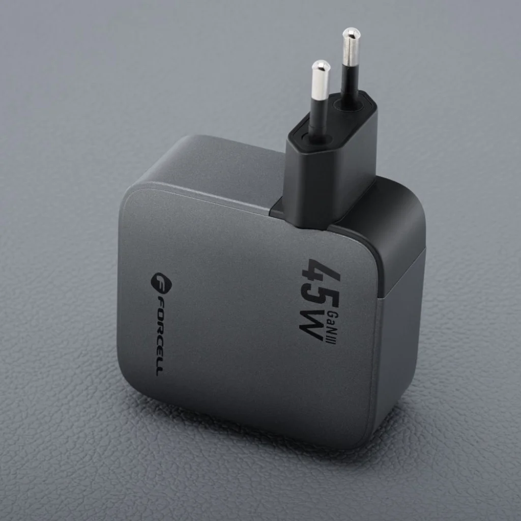A Forcell F-ENERGY a harmadik generációs GaN (gallium-nitrid) félvezetőket alkalmazza, amelyek forradalmasítják a töltési szabványokat. Ez a korszerű technológia kiemelkedő energiahatékonyságot biztosít, minimalizálja a hőtermelést és sokkal jobb teljesítményparamétereket kínál, mint a hagyományos szilícium alapú töltők. Ennek eredményeként egy kompakt méretű, mégis rendkívül erőteljes töltőt kap, amely kompromisszumok nélkül biztosítja az energiaellátást.