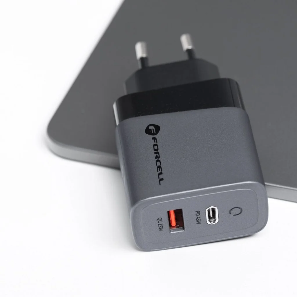 FORCELL F-ENERGY GaN VT-39 utazó töltő Type C + USB A PD QC4.0 4A 45W szürke