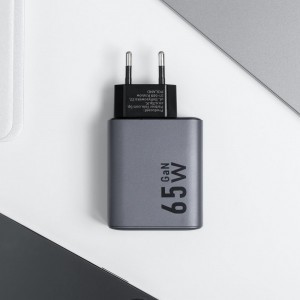 65 W fali töltő három porttal: 2x USB-C és 1x USB-A