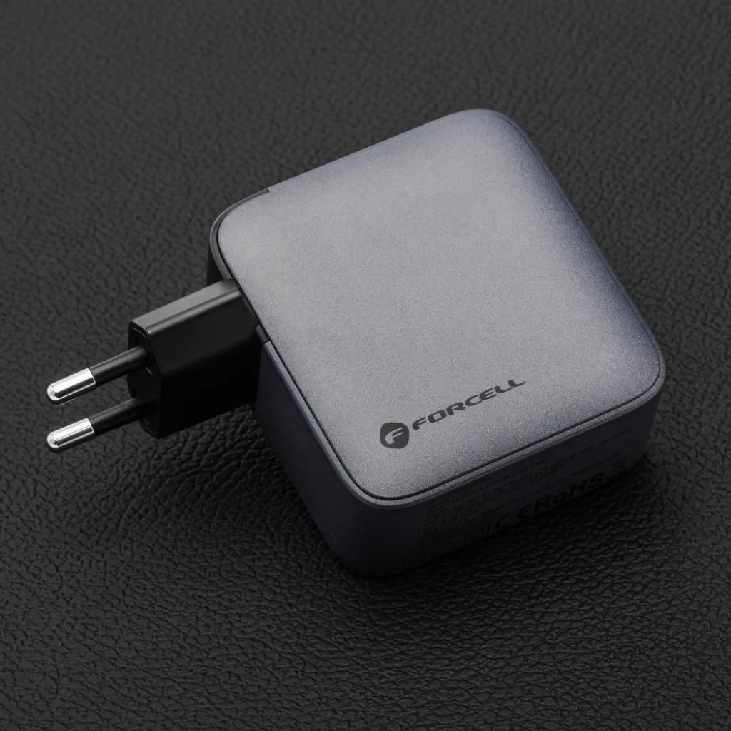 A Forcell fali töltő GAN technológiával készült, és összesen 100 W teljesítményt nyújt. Támogatja a Quick Charge 4.0, a Power Delivery és a Super Fast Charging 2.0 töltési szabványokat, és lehetővé teszi telefonok, táblagépek és laptopok töltését. Négy porttal rendelkezik - három USB-C és egy USB-A -, és akár négy eszközt is képes egyszerre tölteni. Innovatív GAN technológia A gallium-nitritből (GaN) készült GAN töltők kisebbek, mégis hatékonyabbak a szilícium alapúaknál. Az új technológiának köszönhetően az akkumulátorok energiatakarékosabbak, nagyobb teljesítményt tudnak leadni, és többféle mobil eszközt - nem csak okostelefonokat - tölthetnek. Super Fast Charging 2.0 A töltő támogatja a Power Delivery, a Quick Charge 4.0 és a Samsung Super Fast Charging 2.0 technológiákat, hogy az eszközök töltési idejét minimálisra csökkentse - töltse fel az akkumulátort 100%-ra akár 1 óra alatt. A gyorsabb töltés a nagy teljesítménynek (100 W) is köszönhető. Négy eszköz egyidejű töltése Három USB-C és egy USB-A porttal rendelkezik, hogy különböző csatlakozókkal rendelkező eszközöket lehessen tölteni. Ráadásul a négy bemenet lehetővé teszi akár négy eszköz egyidejű táplálását is. Okostelefonokhoz, táblagépekhez és laptopokhoz Sokoldalúan használható. Alkalmas modern okostelefonok és táblagépek, valamint laptopok és régebbi telefonok töltésére. Kis, kompakt méret Kis, kompakt méretének köszönhetően könnyen szállítható és tárolható. Az elegáns szürke szín kiemeli a modell versenytársai közül. Biztonsági garancia A töltő teljes mértékben megfelel a CE, LVD és RoHS szabványoknak, és egy speciális áramkör védi a túlmelegedés és a feszültségingadozások ellen. 100 W fali töltő négy porttal: 3x USB-C és 1x USB-A Műszaki adatok : Model: VT-46 Bemenet: AC 110-240 V 3 A (max.) / 50-60 Hz USB-C kimenet 1/2: 5 V/3 A; 9 V/3 A; 12 V/3 A; 15 V/3 A; 20 V/5 A (100 W) USB-C 3 kimenet: 5 V/3 A; 9 V/3 A; 12 V/3 A (30 W) USB-A kimenet: 5 V/3 A; 9 V/3 A; 12 V/2.5 A (30 W) Ezen felül: PD (Power Delivery), Quick Charge 4.0, Super Fast Charging 2.0 A tényleges töltési idő az akkumulátor kapacitásától és állapotától függ.