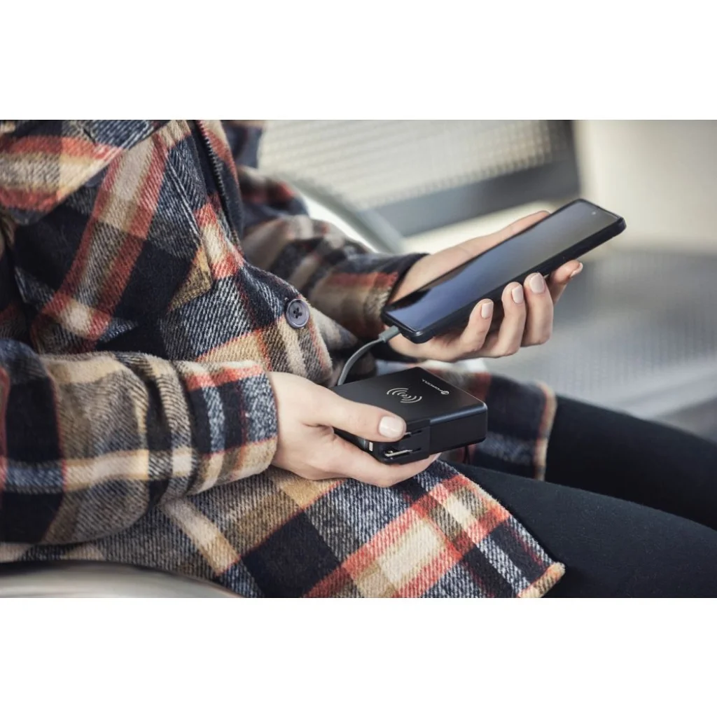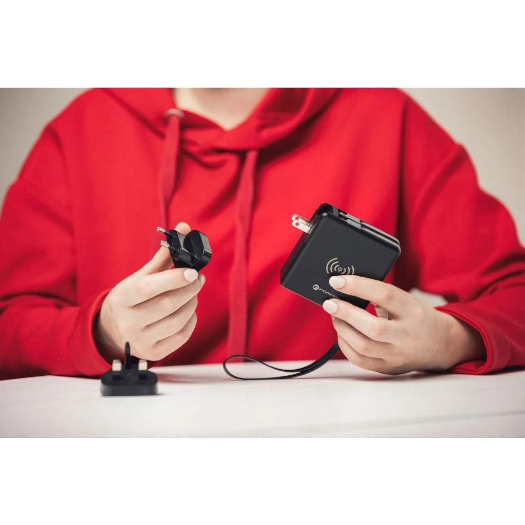 A tökéletes utazási készlet: FORCELL 5 az 1-ben multitöltő. Beépített USB-C és USB-A csatlakozókkal, valamint power bankkal rendelkezik. Lehetővé teszi a vezeték nélküli töltést. Beépített töltőkábelek: USB-C, Lightning (iPhone kompatibilis), amely lehetővé teszi több különböző eszköz egyidejű töltését. A második kábel hibrid - két csatlakozót egyesít egyben: Micro USB-Lightning. A 3 cserélhető fej (UK, US, EU) lehetővé teszi a különböző áramforrások használatát szinte bárhol a világon. A vezeték nélküli töltés lehetővé teszi az eszközök kábel csatlakoztatása nélküli töltését. A beépített power bank (10,000 mAh) magas kapacitásával többszöri eszköztöltést tesz lehetővé áramforrás nélkül. A támogatott töltő szabványok: Power Delivery, Quick Charge 3.0 és 4.0, melyek lehetővé teszik a gyors töltést az ezekre a funkciókra képes eszközök esetében. Támogatja az AFC funkciót a Samsung telefonokban. A beépített kijelző megmutatja a power bank aktuális töltöttségi szintjét. Műszaki adatok: Bemeneti feszültség: 110-240V~ AC bemeneti frekvencia: 50-60Hz, 3A Kimeneti feszültség: 5.0V, 3.0A Kimeneti teljesítmény: 20W Power bank: 10,000 mAh Vezeték nélküli töltés: 15W Beépített portok: USB-A, USB-C A CE, LVD, ERP, ROHS tanúsítványok garantálják a legmagasabb termékminőséget. Méret: A: 12 cm B: 16 cm C: 5 cm Növeld vállalkozásodat Forcell-lel! Nézd meg, mit nyersz a márka hivatalos forgalmazójaként. Van kérdésed? Lépj kapcsolatba az értékesítési képviselőddel, aki részletes tájékoztatást nyújt az ajánlatról.
