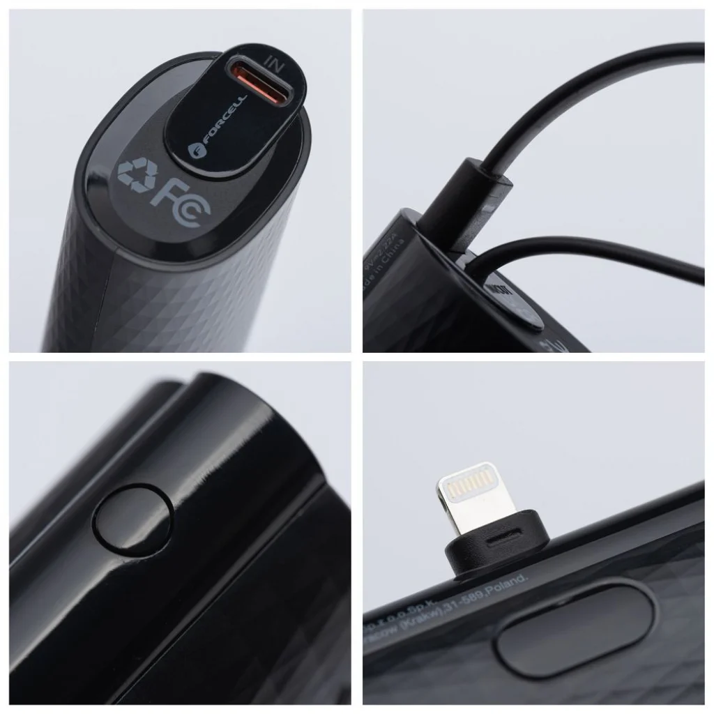 FORCELL F-ENERGY Power Plug F5K3 powerbank 5 000mAh Lightning 8-PIN PD 20W fekete
