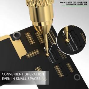 A 2UUL SC98 forrasztószint-beállító eszköz egy professzionális eszköz, amely ideális precíziós munkákhoz az elektronikában. Ultrakönnyű szénszálas anyagból készült, amely kiváló kényelmet és irányítást biztosít még hosszabb használat során is, anélkül, hogy kézfáradtságot okozna. Egyszerű, könnyen tisztítható kialakításának köszönhetően ez az eszköz hosszú távon megőrzi teljesítményét. Három cserélhető tűtípust tartalmaz, amelyek széles körű alkalmazást tesznek lehetővé - FPC csatlakozóktól kezdve más kényes elektronikai alkatrészekig. A finom hegyek lehetővé teszik a rendkívül pontos munkavégzést még szűk helyeken is.Specifikációk:- Ultralight anyag: szénszál a könnyű kezelhetőségért- Könnyű karbantartás: egyszerű tisztítás és meghosszabbított élettartam- 3 típusú hegyet tartalmaz: különböző méretekhez és csatlakozókhoz megfelelő- Precíz irányítás: rugalmas működés a nehezen elérhető területeken- Széles körű sokoldalúság: ideális forrasztáshoz és különböző elektronikai alkatrészekkel való munkavégzéshez