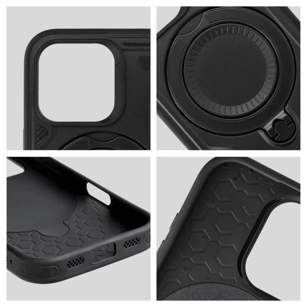 A megerősített szerkezettel és praktikus, kihúzható támasztékkal rendelkező tok szilárd megoldás, amely kiválóan működik a mindennapi használat során. A vezeték nélküli töltéssel való kompatibilitás és a kamera körüli megemelt szélek mind kényelmet, mind védelmet nyújtanak. A megerősített Armor típusú kialakítás hatékonyan védi a készüléket, és a kettős anyagú konstrukció további tartósságot biztosít. Az oldalán lévő puha TPU tökéletesen illeszkedik a telefonhoz, míg a kemény PC hátlap jobb védelmet nyújt a készülék hátuljának esés esetén. A tokban rejtett gyűrű stabil tartóként funkcionál, lehetővé téve a telefon kényelmes, vízszintes beállítását - nagyszerű megoldás filmek vagy fényképek nézésekor. Összecsukott állapotban a gyűrű beleolvad a tokba, nem zavarva a töltési és eszközhasználati folyamatot. A kamera körüli megemelt perem további védelmi gátat biztosít a lencsék számára, lehetővé téve a telefon biztonságos letételét anélkül, hogy a lencsék megkarcolódnának. A tok támogatja a vezeték nélküli töltést, lehetővé téve a töltést és a mágneses tartók használatát a tok eltávolítása nélkül.