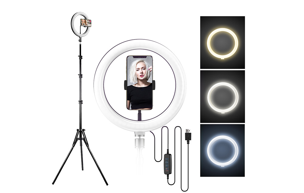 USB interfészen keresztül működtetve, a körfény 120 LED-del van felszerelve, amelyek biztosítják a világos és stabil fényt a kiváló minőségű tartalomkészítéshez. Emellett a kialakítás tartalmaz egy állítható telefontartót, amely a piacon lévő legtöbb mobiltelefonmodellt illeszkedik, így rendkívül sokoldalú.