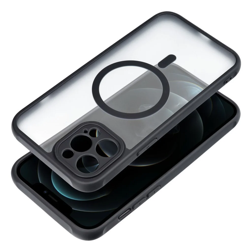 Biztosítsa okostelefonja kiváló védelmét a Full Matte Mag Cover segítségével, amely tartós és matt, átlátszó bevonatával véd az ütések vagy karcolások ellen. A termék kompatibilis a MagSafe technológiával, amely többek között induktív töltést tesz lehetővé. A Full Matte Mag Cover garantálja a magas minőségű anyagokat és a teljes kényelmet iPhone készülékéhez. Támogatja a MagSafe technológiát, amely lehetővé teszi, hogy kábelek nélkül töltse telefonját. A beépített mágnesekkel ellátott gyűrű lehetővé teszi az akkumulátor induktív feltöltését anélkül, hogy eltávolítaná a tokot. Használhat mágneses autós tartókat is anélkül, hogy aggódnia kellene a rögzítés megbízhatósága miatt vezetés közben. A tok kiváló minőségű műanyagból készült, elég tartós ahhoz, hogy hosszú ideig szolgáljon. Megakadályozza a nem kívánt hatásokat, mint a magasból történő leesés és a karcolások a sima felületen. A kijelző körüli megemelt peremek megőrzik az okostelefon éleit, és a kamera sziget esztétikus megjelenést kölcsönöz a matt toknak.