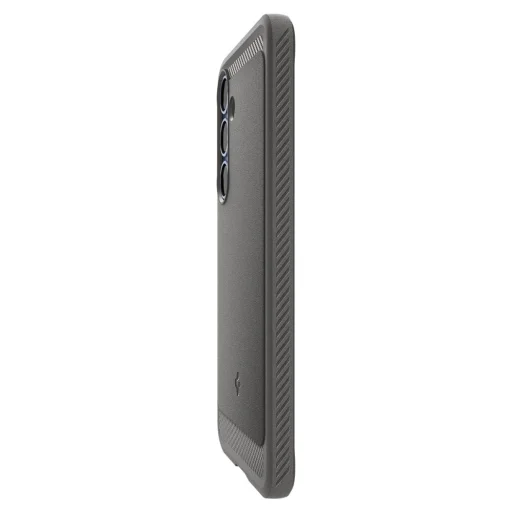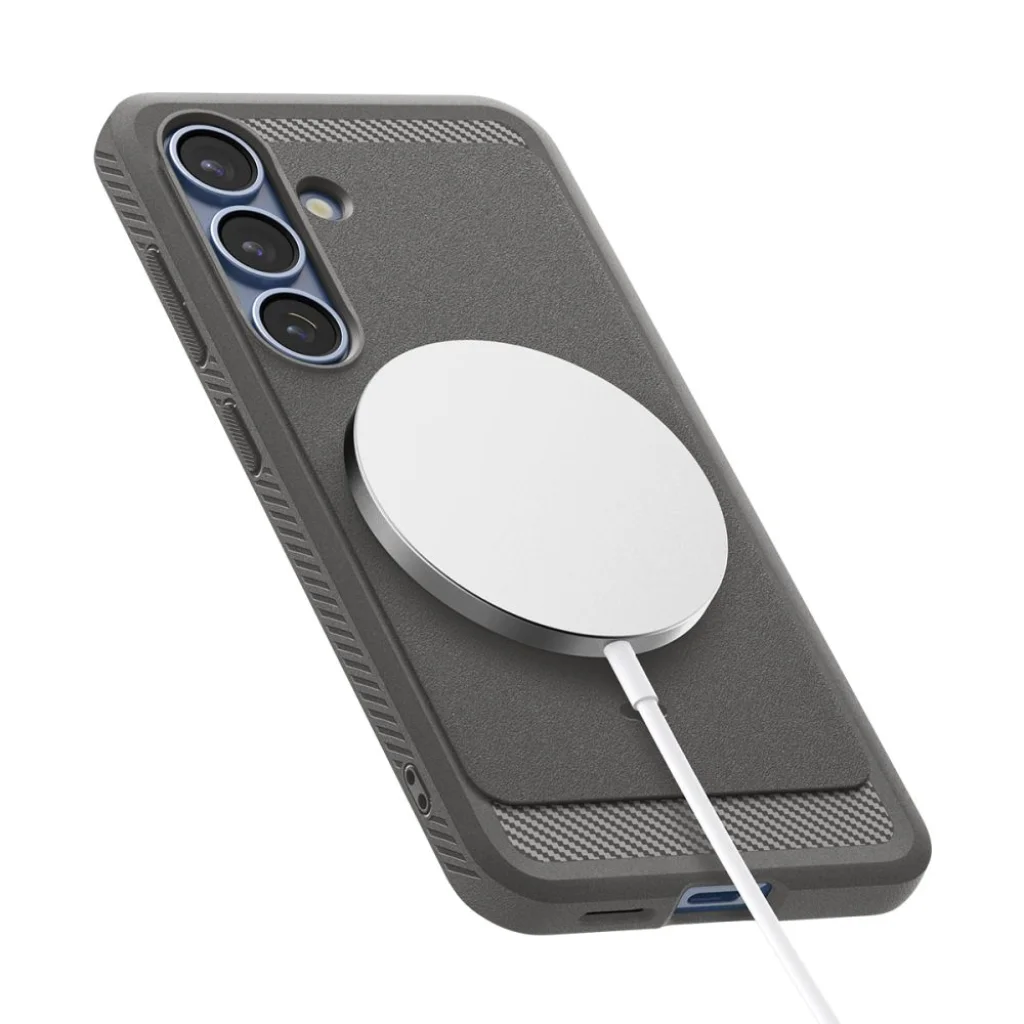 A Spigen Rugged Armor Magsafe egy kivételes tok, amely ötvözi a modern dizájnt készüléke tökéletes védelmével. Tartós és rugalmas TPU anyagból készült, amely ellenálló a kopással szemben, továbbá fényes szénszálas borítással rendelkezik, amely elegáns karbon textúrát hoz létre. Azok számára készült, akik nem kötnek kompromisszumot, a Rugged Armor nemcsak stílusos megjelenést, hanem páratlan tartósságot is biztosít. Fejlett védelmi technológiájával és precíz kidolgozásával okostelefonja védett lesz a mindennapi használat során jelentkező összes veszély ellen. A tok belsejében technológiai hab töltet található, amely további védőréteget biztosít az ütések és a készülék esetleges leesése ellen. A tokot a MagSafe vezeték nélküli technológiával kompatibilis gyűrűvel szerelték fel. A mágneses gyűrű maximális töltési hatékonyságot és gyors, egyszerű csatlakozást biztosít minden MagSafe funkciós kiegészítőhöz.