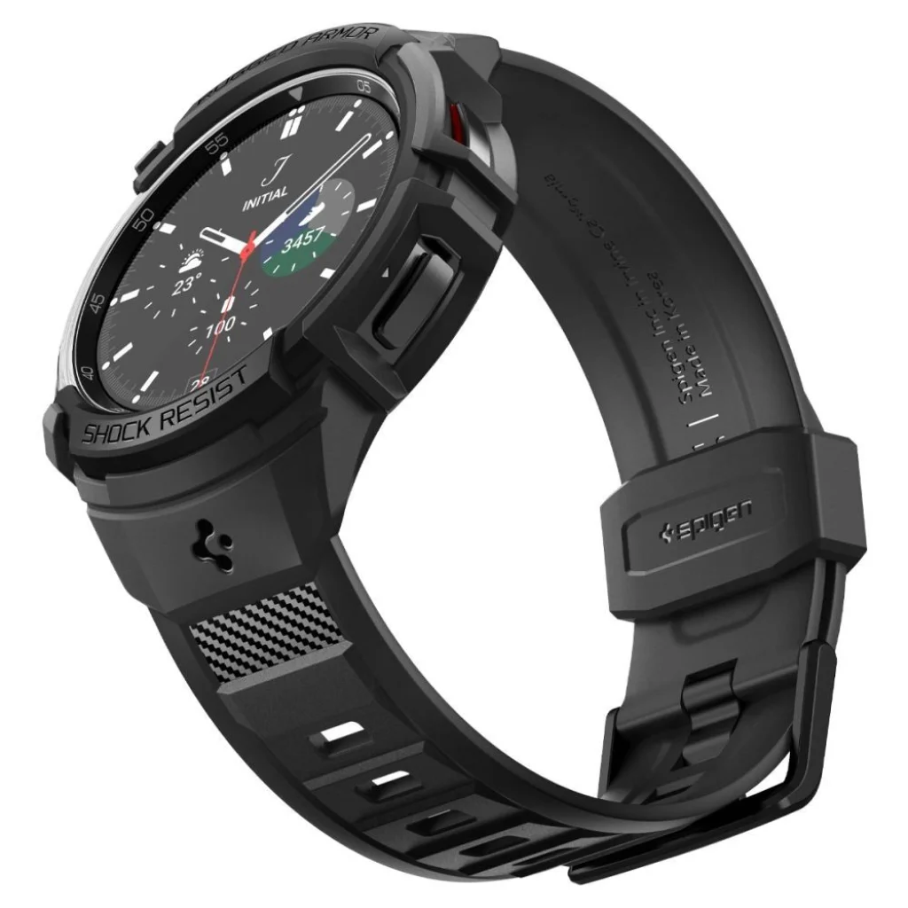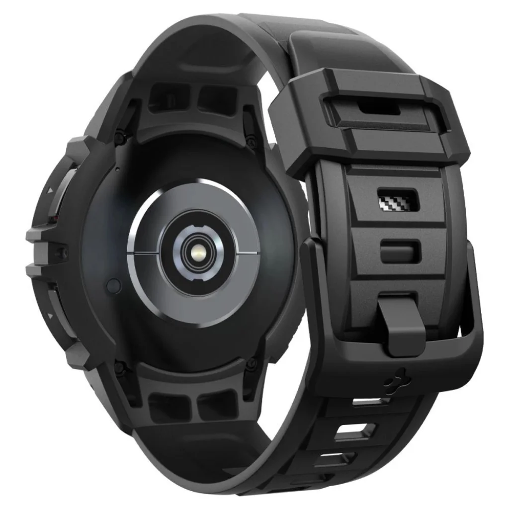 Kényelmes és sportos Spigen Rugged Armor "Pro" szíj. Rugalmas TPU anyagból készült, szénszálas díszítésekkel. Integrált tokkal rendelkezik, kiemelt szélekkel, amelyek védik az óratokot a karcolások és ütések ellen. A szíj teljesen funkcionális és egyéni igények szerint állítható.
