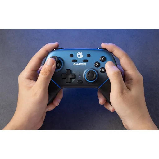 A GameSir SuperNova T4n Pro vezeték nélküli kontroller (kék) PC, Nintendo Switch, iOS és Android játékosok számára készült. Háromféle csatlakozási módot kínál - vezetékes, Bluetooth és 2,4 GHz-es -, így bármilyen platformon korlátozások nélkül játszhatsz. A Hall Effect rendszerrel ellátott analóg karok megszüntetik a sodródás problémáját, biztosítva a precizitást, míg a speciális gyűrűk megakadályozzák a súrlódást, zökkenőmentes mozgást biztosítva dinamikus játékmenet során.