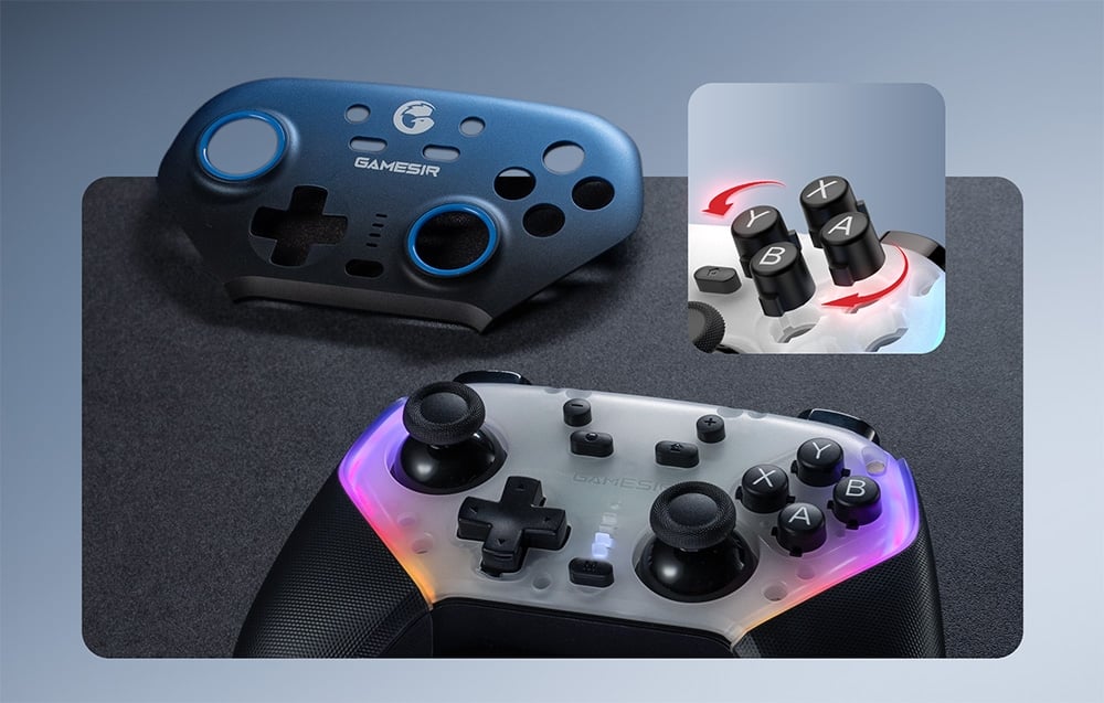 A SuperNova T4n Pro személyre szabható és kényelmesen használható. Az RGB háttérvilágítás és a mágneses cserélhető fedőlap révén stílusod szerint alakíthatod ki, a cserélhető ABXY gombelrendezés pedig egyszerűsíti a platformok közötti váltást. A programozható hátsó gombok lehetővé teszik a makrók mentését, így még nagyobb előnyre tehetsz szert a játékban.