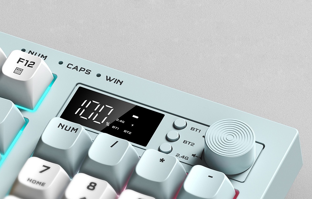 A beépített vezérlőgomb segítségével gyorsan beállíthatod a hangerőt vagy a háttérvilágítás fényerejét. Ráadásul a billentyűzet egy kis OLED-képernyővel rendelkezik, amely információkat jelenít meg a csatlakozási módról, az akkumulátor állapotáról és egyebekről. Ez a megoldás fokozza a felhasználói élményt, és lehetővé teszi, hogy mindent kézben tartson.
