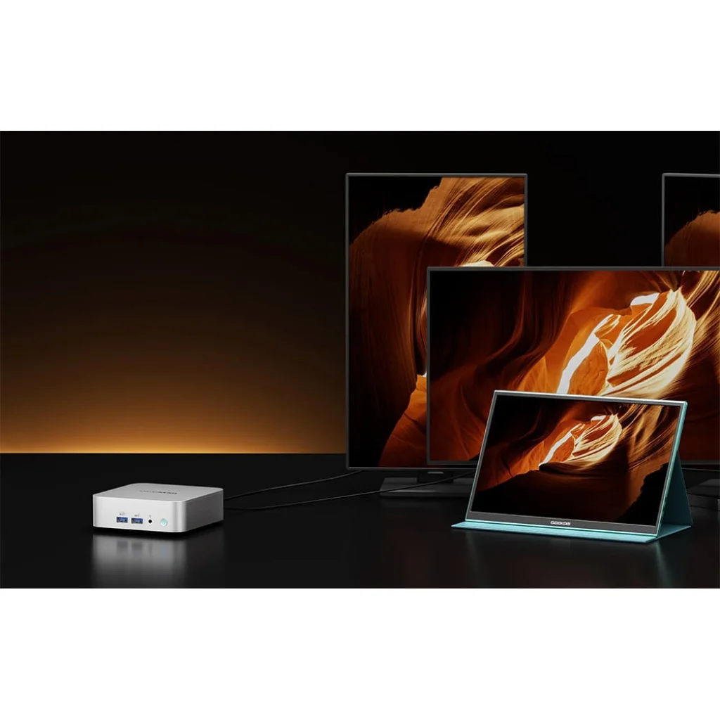A beépített AMD Radeon 780M grafika RDNA3 architektúrára épül, így kiválóan alkalmas multimédiás feladatokra, 3D-tervezésre, videószerkesztésre és játékra is. A mini PC akár 4 monitor egyidejű csatlakoztatását is támogatja további adapterek nélkül, az USB-C 4.0, USB 3.2 Gen 2 és 2 darab HDMI 2.0 portoknak köszönhetően. Támogatott felbontások: akár 8K@30Hz és 4K@60Hz.
