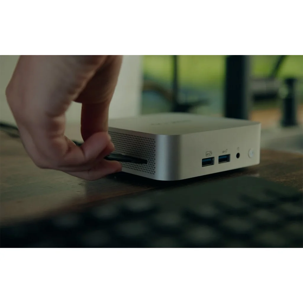 Az előre telepített Windows 11 Pro támogatja az üzleti funkciókat, a fokozott biztonságot és az AI-alapú megoldásokat. A kompakt, 112,4 x 112,4 x 37 mm-es méretnek és a mellékelt VESA-tartónak köszönhetően a készülék könnyen elhelyezhető monitor mögött, falon vagy asztal alatt is. A modell energiafogyasztása mindössze 45 W, így takarékos alternatívát jelent a hagyományos asztali számítógépekkel szemben.