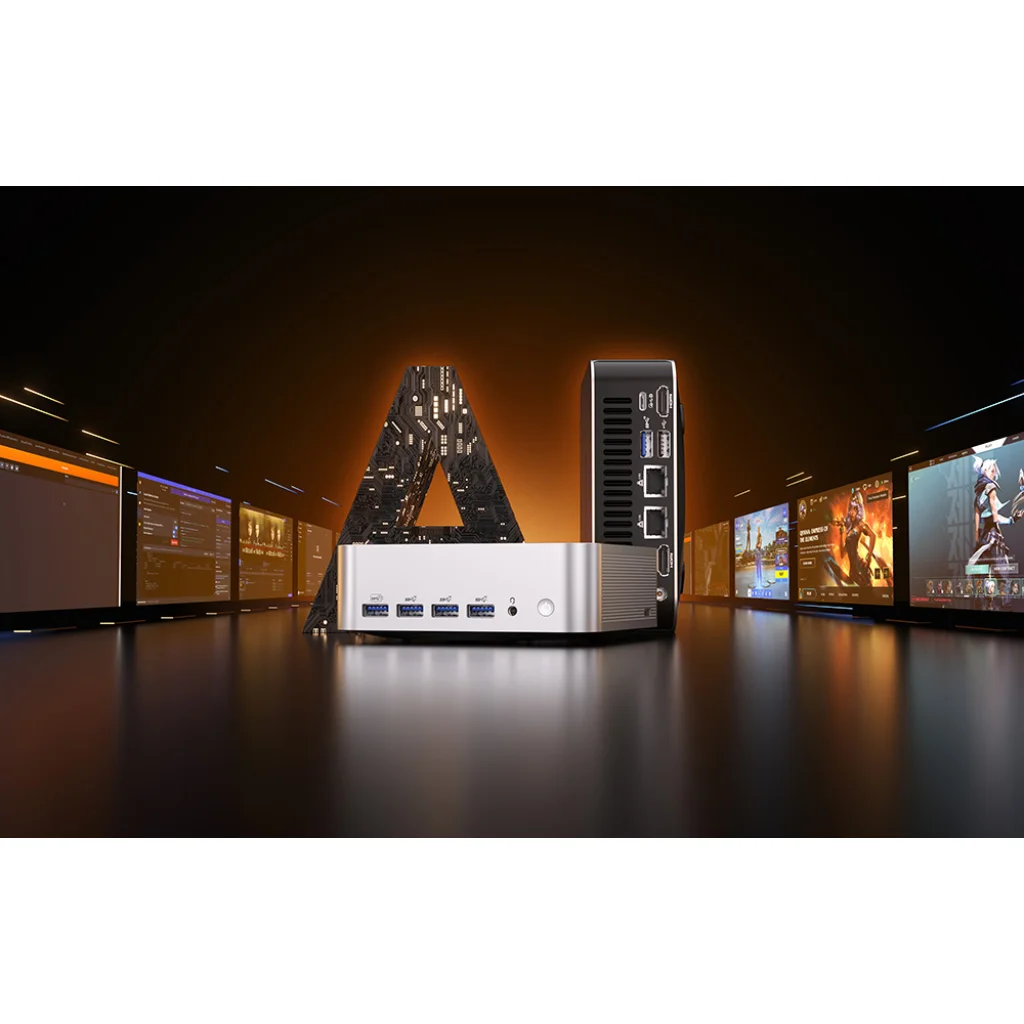 Beépített portok és új generációs csatlakozási lehetőségek Az A9 Max két USB4 porttal (40 Gbps, Power Delivery, DP Alt Mode), öt USB-A 3.2 Gen 2 porttal, egy USB-A 2.0 porttal, két HDMI 2.1 FRL kimenettel, kettős 2,5 GbE LAN-nal, teljes méretű SD 4.0 kártyaolvasóval, valamint Wi-Fi 7 és Bluetooth 5.4-gyel rendelkezik. Támogatja a 4K és 8K kijelzőket – függetlenül attól, hogy Ön több képernyőt igénylő alkotó vagy szervereket és NAS-eszközöket kezelő haladó felhasználó, az A9 Max biztosítja a kapcsolatot.