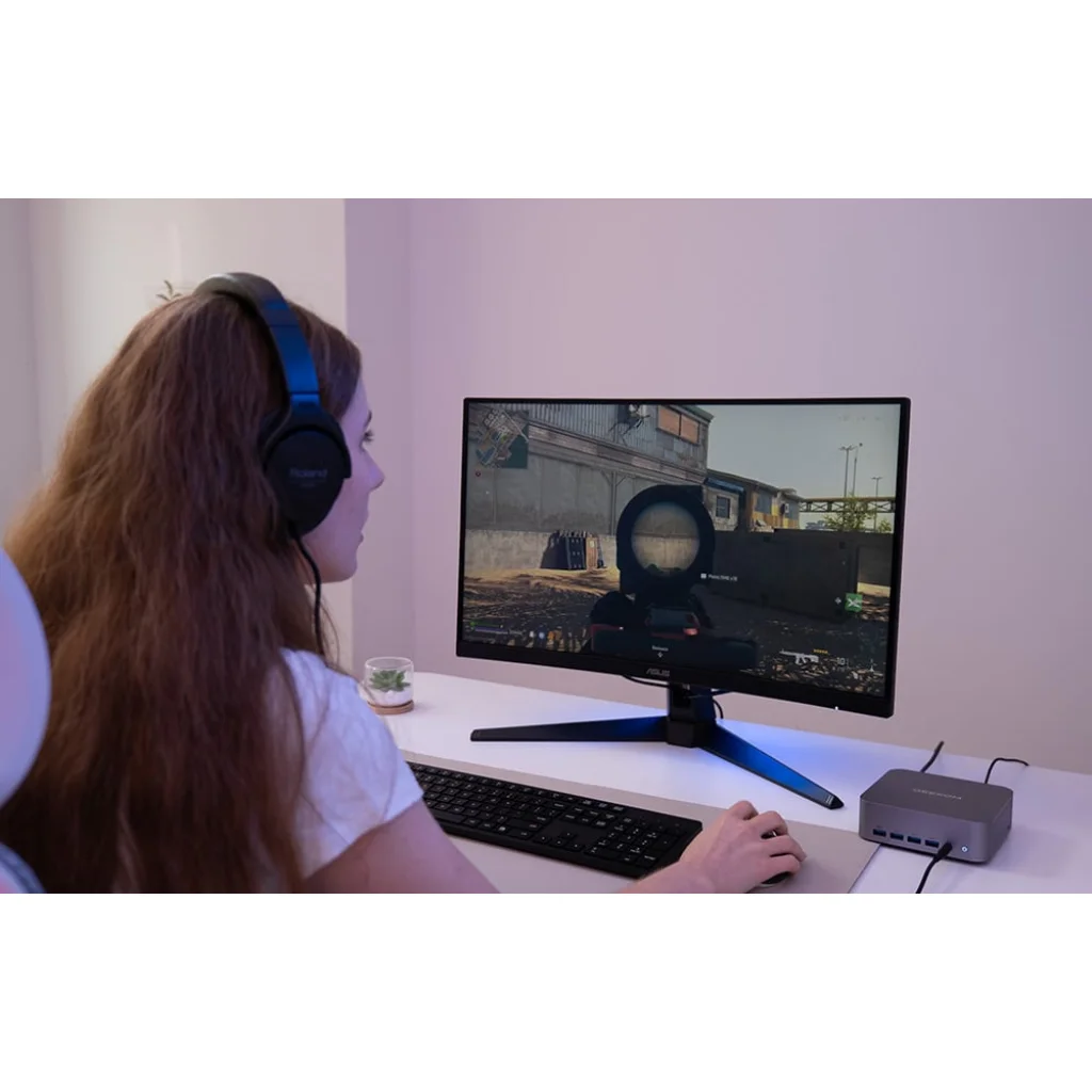 Az Intel® Arc™ grafikus kártya teljesen új szintre emeli a mini PC-s játékokat. Az olyan címek, mint a Dolmen, a Hitman 3 és a The Riftbreaker zökkenőmentesen futnak, kiváló képminőséget és stabil képfrissítési sebességet biztosítva. Az Intel® XeSS AI Super Sampling technológia lehetővé teszi a felbontás 1080p-ről 4K-ra történő méretezését a szubpixel részletek rekonstruálásával, így még jobb vizuális élményt nyújt a teljesítmény romlása nélkül.