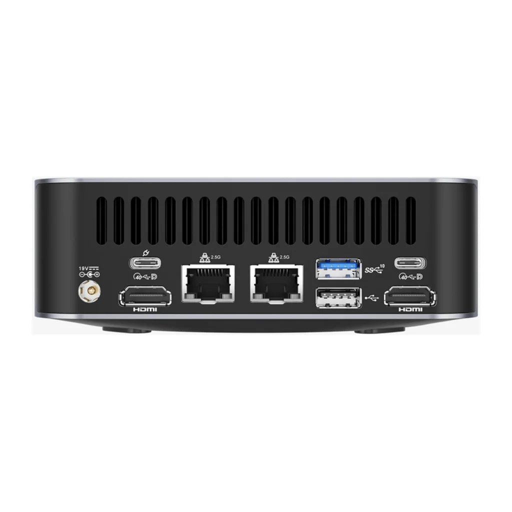 Két 2,5 Gbps-es Ethernet-port biztosítja a gyors és stabil vezetékes kapcsolatot, amely ideális irodai munkához, nagy fájlok átviteléhez vagy vállalati környezetben. A megfelelő szoftverrel kombinálva a mini PC soft routerként, virtuális gépként, hardveres tűzfalként vagy otthoni szerverként működhet, így hálózati infrastruktúrájának központjává válik. Ezenkívül a WiFi 7 szabvány szélesebb csatorna sávszélességet, Multi-Link Operation funkciót és magasabb QAM-ot támogat. Ez még gyorsabb internetkapcsolatot, alacsonyabb késleltetést és nagyobb stabilitást jelent – különösen olyan igényes alkalmazások esetében, mint a felhőalapú játékok, a kiterjesztett valóság vagy a 8K-s streaming.