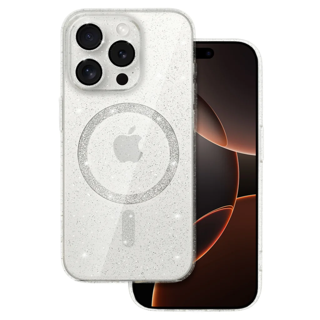 A Glitter Magsafe tok egy csillogó tok, amely rugalmas TPU anyagból (oldalak) és kemény Akrilból (hátlap) készült. A tok védi a smartphone hátlapját, oldalait, kameráját és kijelzőjét. A tokba épített mágnesek kompatibilisek az Apple MagSafe kiegészítőivel.
