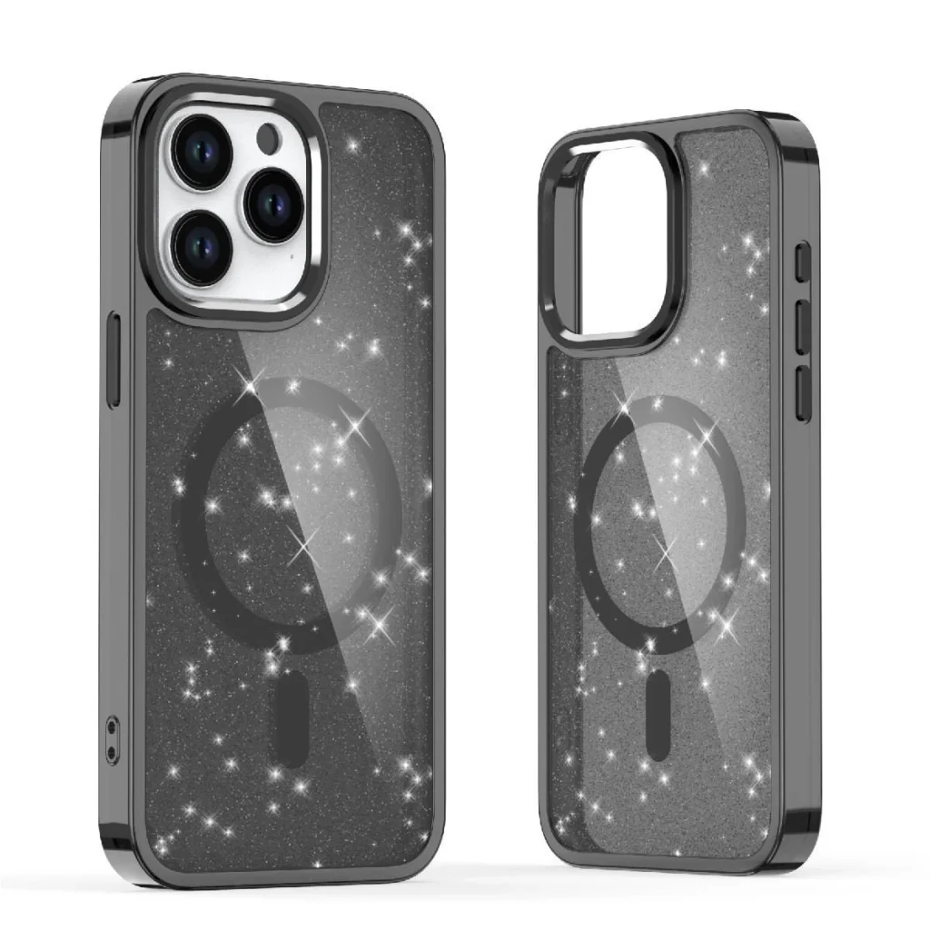 Glitter tok MagSafe iPhone 16 Plushoz - fekete csillogással. A Glitter tok MagSafe tok hatékonyan védi okostelefonját a károsodástól - akár 5000 ejtéspróbát is sikeresen teljesített! A rendkívül átgondolt dizájn nemcsak védi, hanem ragyogóan bemutatja a készüléket, csillogást és eleganciát adva hozzá. Ezenfelül, a MagSafe rendszerrel való kompatibilitás megkönnyíti a különféle kiegészítők, például autós tartók vagy töltők használatát.