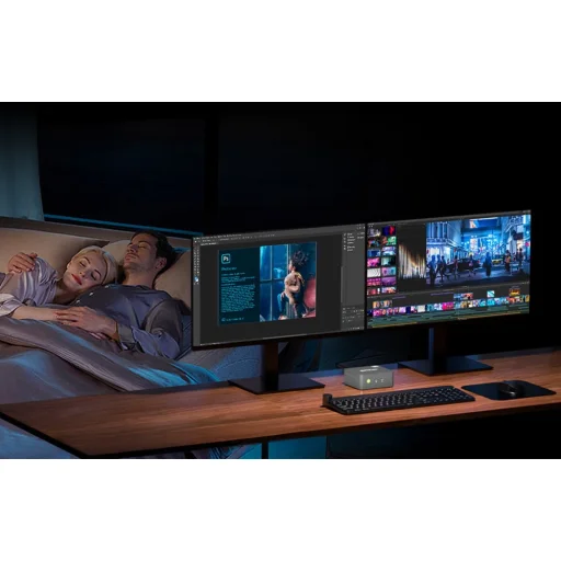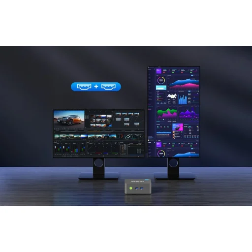 A Mini PC-vel két 4K@60Hz monitort csatlakoztathat HDMI 2.0 csatlakozók segítségével. Ez a konfiguráció kényelmes multitaskingot, jobb alkalmazáskezelést és a nagyfelbontású tartalmak zökkenőmentes lejátszását teszi lehetővé. Ez egy jó megoldás mind üzleti, mind otthoni felhasználók számára.