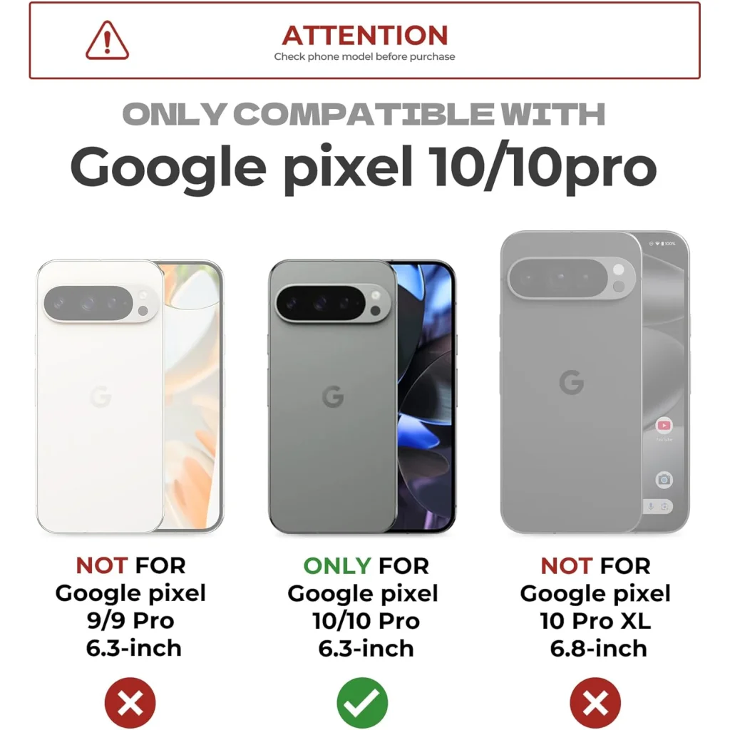 Ez a tok kizárólag a Google Pixel 10 és Google Pixel 10 Pro modellekhez készült. Kérjük, vásárlás előtt ellenőrizze telefonja modelljét, hogy elkerülje a kompatibilitási problémákat.