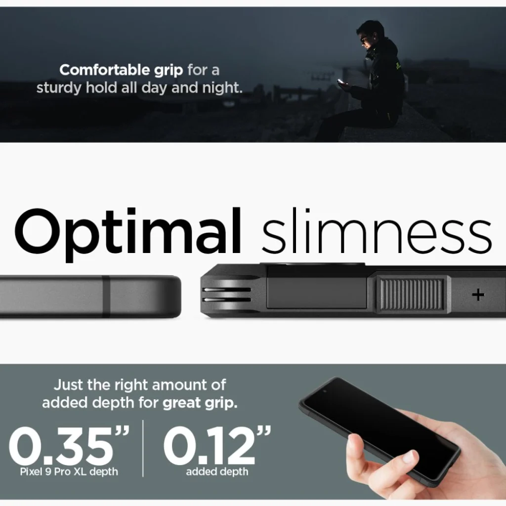 A kamera és a kijelző körüli enyhén emelt kialakítás megvédi azokat a karcolódásoktól, felemelve a telefont a sík felületről. Tartalmaz gombvédőket és port kivágásokat.