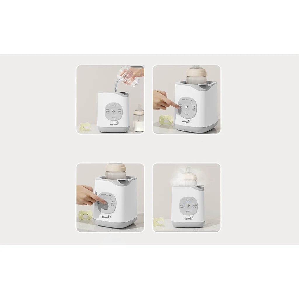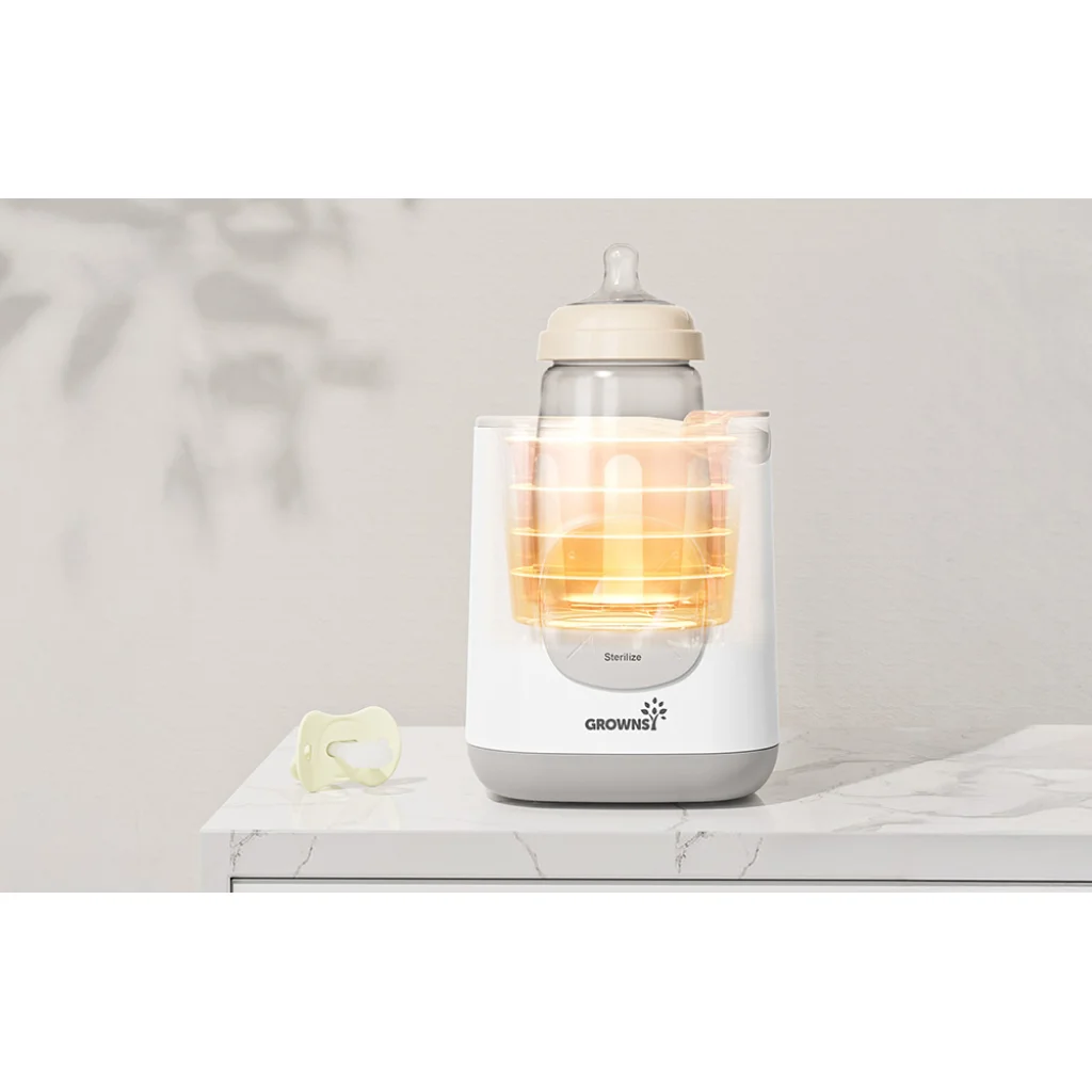 A Grownsy nem csupán egy melegítő. Egyben cumisüveg- és cumi-sterilizáló, fagyasztott tej kiolvasztó és ételmelegítő is nagyobb gyermekek számára, amely akár 120 percig képes melegen tartani az ételt. Nincs szükség több külön készülék megvásárlására. Akár egy újszülött cumisüvegét készíti elő, akár egy egyéves gyermek vacsoráját melegíti, a Grownsy mindig készen áll a segítségre.