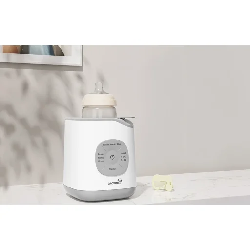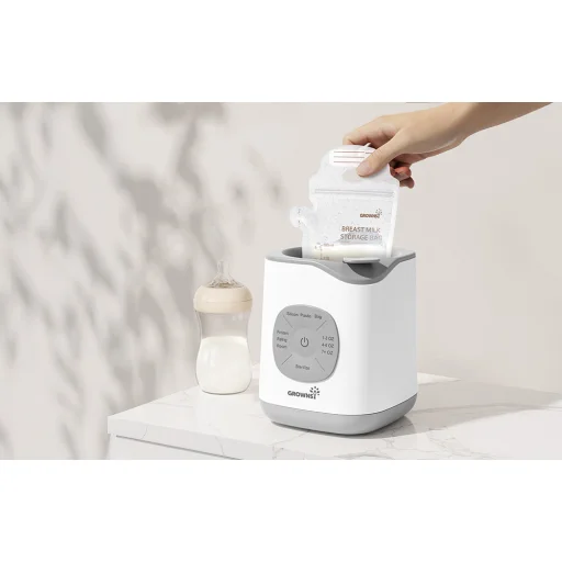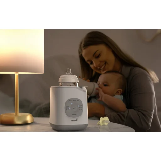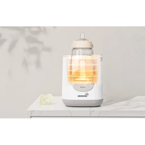 A Grownsy 10 az 1-ben cumisüveg-melegítőt a legigényesebb szülők számára tervezték, akik értékelik a modern technológia és a baba egészségének támogatása közötti egyensúlyt. A készülék körülbelül 2–7 perc alatt melegíti fel a tejet az ideális hőmérsékletre, miközben megőrzi az értékes tápanyagokat. Ez a kíméletes vízfürdős technológiának köszönhető, amely megakadályozza a túlmelegedést és segít megőrizni az étel természetes tulajdonságait. A 28 előre beállított melegítési funkcióval, sterilizálási, kiolvasztási és ételmelegítési lehetőségekkel ez egy elegáns és kompakt, sokoldalú készülék.