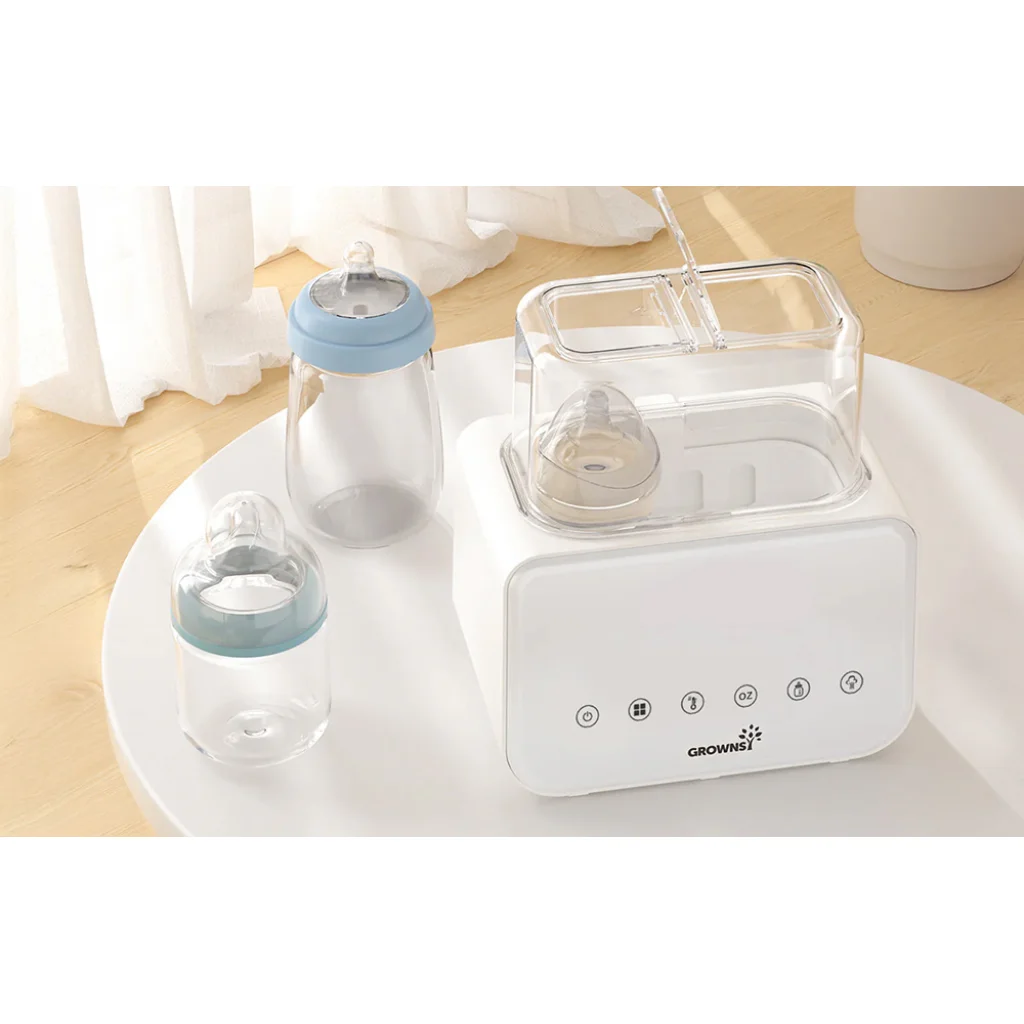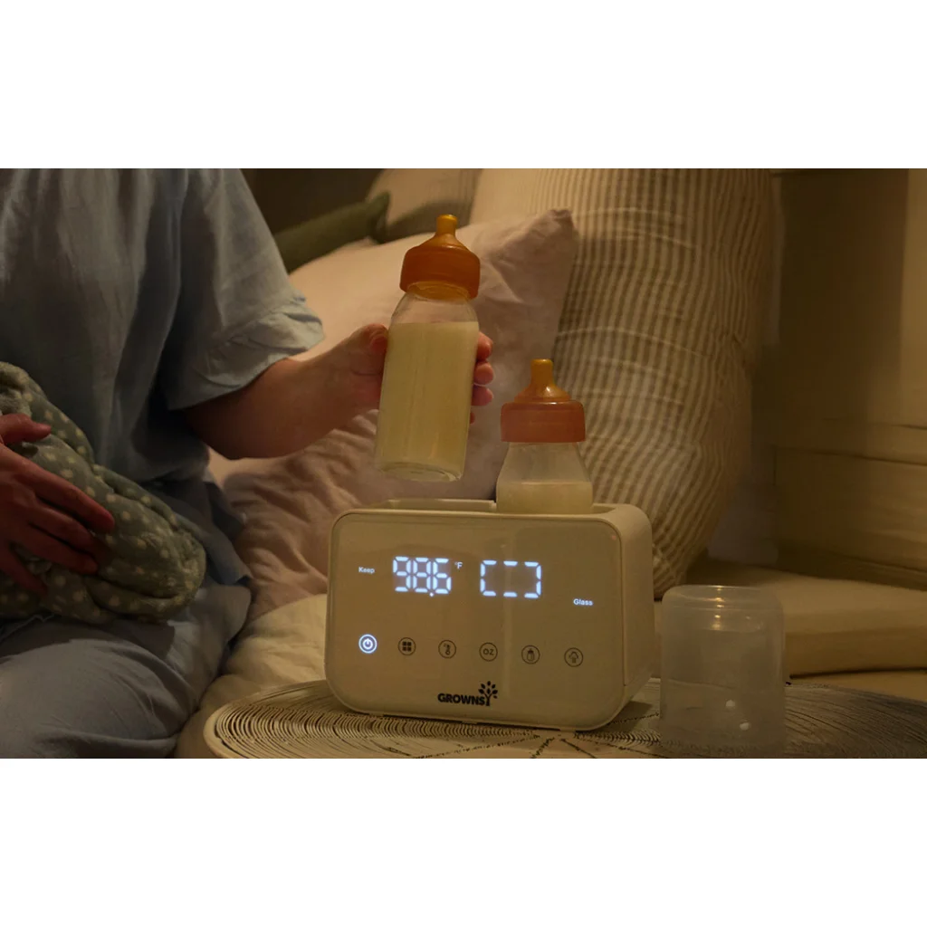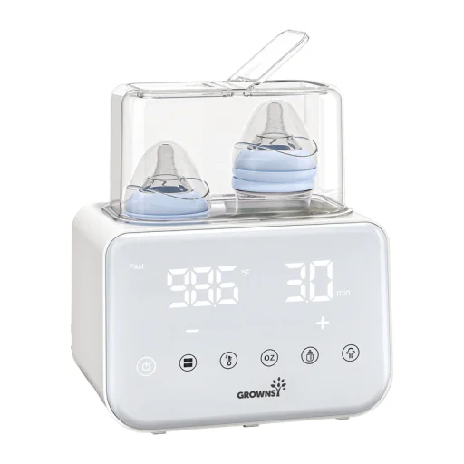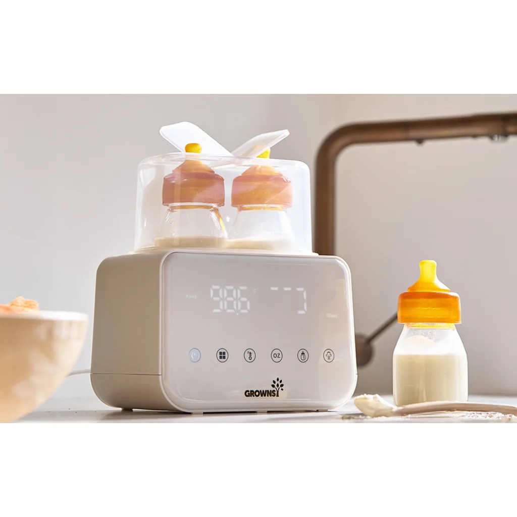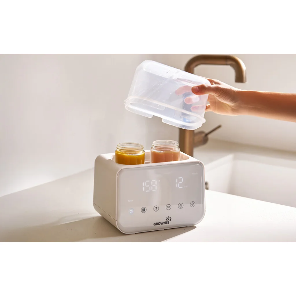 A Grownsy dupla palackmelegítőt azoknak a szülőknek a mindennapi igényeihez tervezték, akik gyorsan és biztonságosan szeretnék előkészíteni a baba etetéséhez szükséges tejet. A nagy, kettős kamrának köszönhetően egyszerre két cumisüveg vagy tejtároló tasak melegíthető, a 10 funkció – gyors gőzmelegítés, vízfürdős melegítés, kiolvasztás, sterilizálás, ételmelegítés, pontos hőmérséklet-szabályozás és időzítő – pedig teljes ellenőrzést biztosít minden etetésnél, nappal és éjjel is.