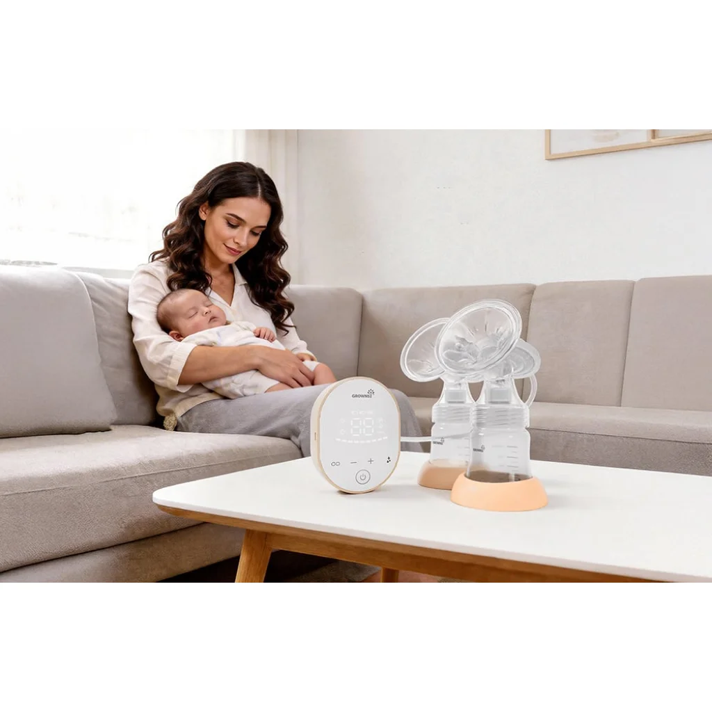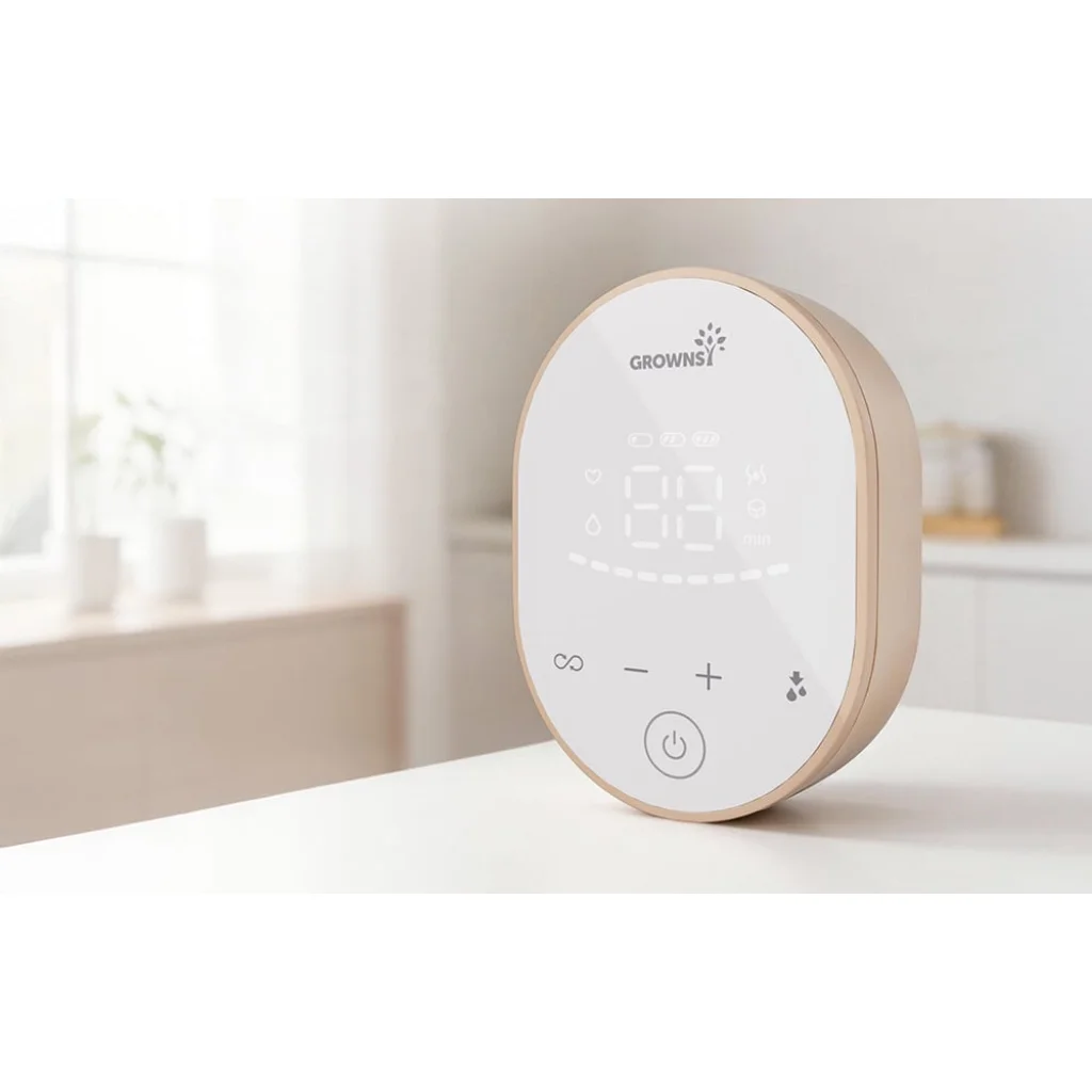 A Grownsy kettős mellszívó három üzemmódot, kilenc szívóerő-beállítást és a két mell egyidejű szivattyúzásának lehetőségét ötvözi, így a készülék működését testéhez és napi rutinjához igazíthatja. A visszafolyásgátló rendszer minden használat során biztosítja a higiéniát. A beépített USB-ről tölthető akkumulátor lehetővé teszi, hogy otthon, a munkahelyen vagy utazás közben is használja a készüléket – anélkül, hogy a napját a konnektorhoz való hozzáféréshez kellene igazítania. A könnyen leolvasható kijelző és a beállítások memóriája biztosítja, hogy a mellszívó minden bekapcsoláskor az Ön preferenciái szerint működjön.