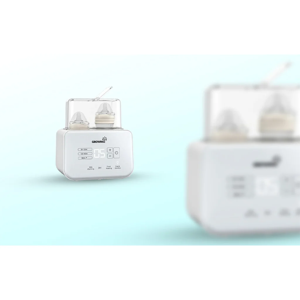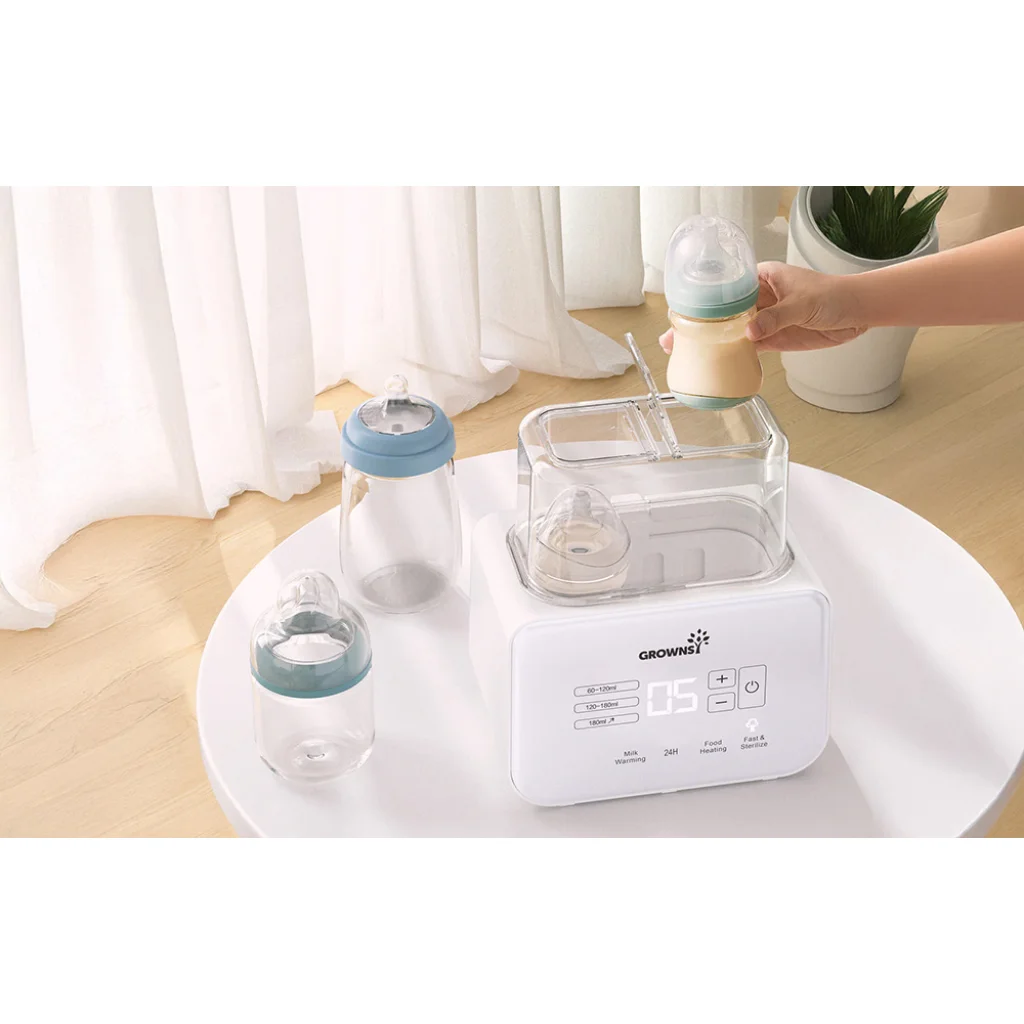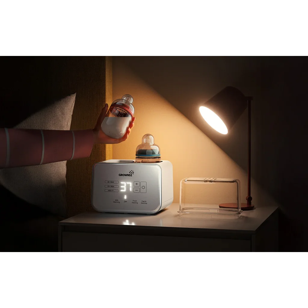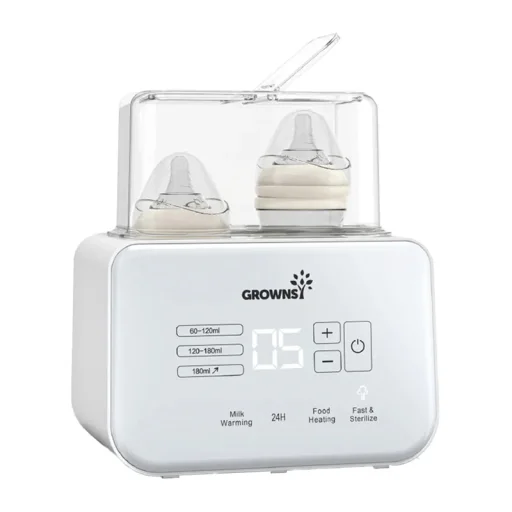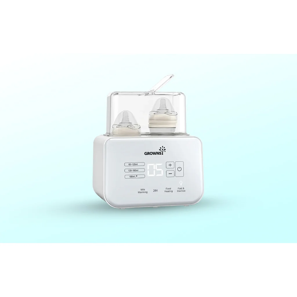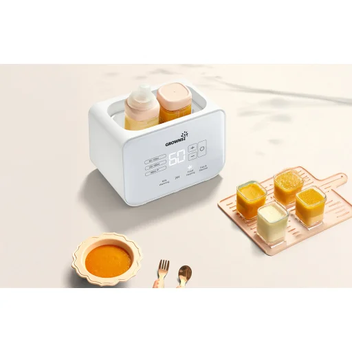A Grownsy multifunkcionális palackmelegítő praktikus segítséget nyújt a szülőknek a baba életének első napjaitól kezdve. Nyolc funkciót ötvöz: gyors tejmelegítés, kiolvasztás, ételek melegen tartása akár 24 órán keresztül, ételek melegítése, gőzsterilizálás, időzítő, hőmérséklet-szabályozás és kosár az égési sérülések ellen. Ez azt jelenti, hogy nem kell több különálló eszközt használnia – mindig kéznél van minden, amire szüksége van, pont akkor, amikor szüksége van rá.