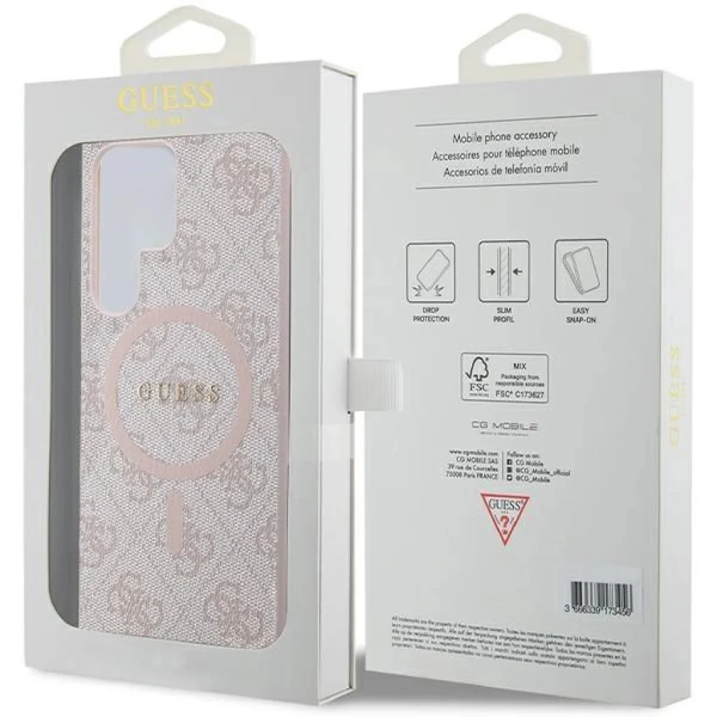 Ez az elegáns kollekció a legigényesebb és kifinomultabb ízlést is lenyűgözi. Minden tokot finom ökológiai bőr díszít, amelyet további minőségi 4G nyomtatás díszít - ez elegáns karaktert és sikket kölcsönöz neki. Ez a motívum a Guess márka klasszikus dizájn eleme, számos projektben fellelhetjük ezt a divatháznak. Az anyag kiváló minőségű, rendkívül ellenálló a sérülésekkel és a karcolásokkal szemben, így hosszú időn keresztül megőrzi kifogástalan megjelenését. A nagyméretű Guess logó, amely középen található a tok hátulján, hangsúlyozza a kollekció elitizmusát, szép díszítő elem, és egyben megerősíti a tok kiváló minőségét és eredetiségét.