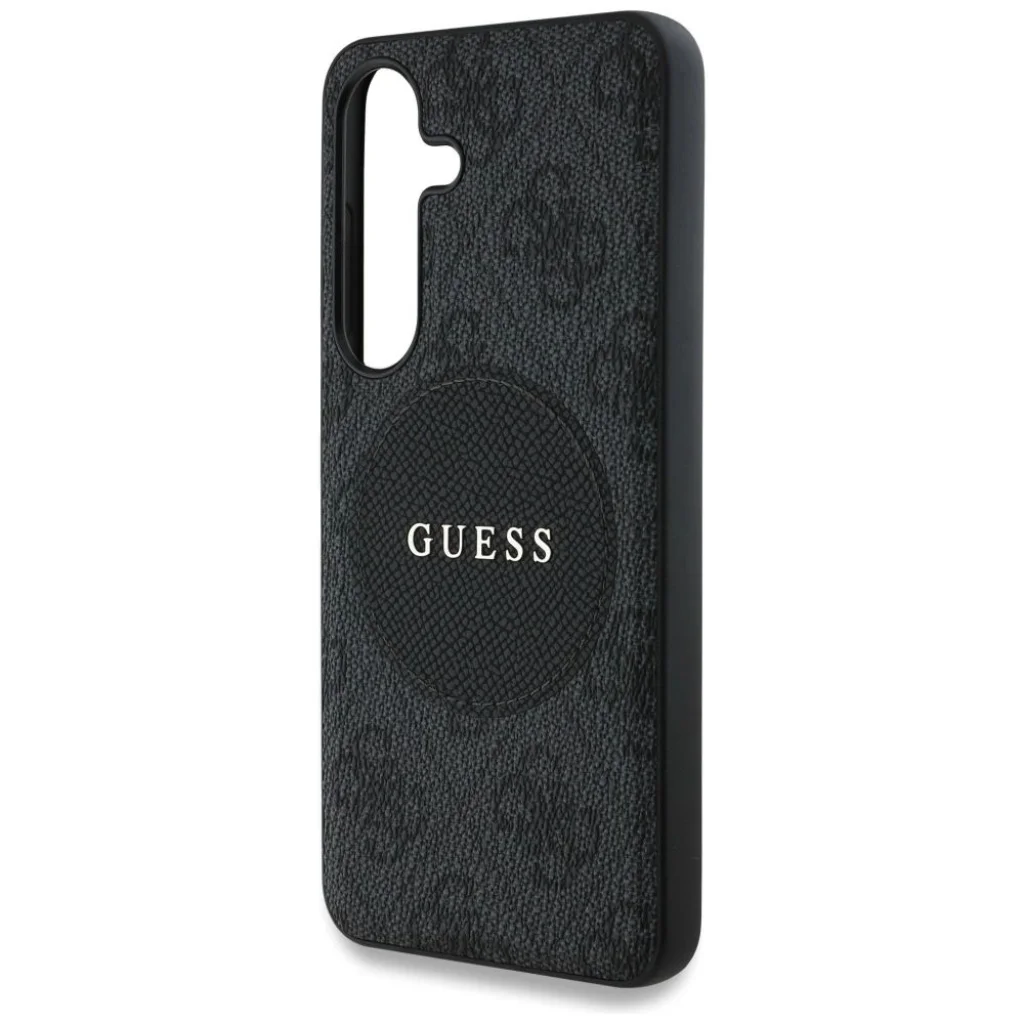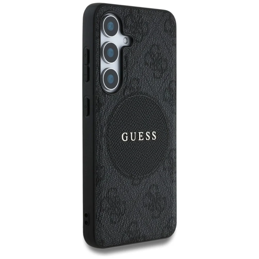 A Guess márkájú exkluzív védőtok az elegancia és a stílus legmagasabb szintjét képviseli. A tokot magas minőségű ökobőr borítja, amelyet a jellegzetes 4G minta és a MagSafe gyűrű díszítenek. A tok közepén található a Guess logója, amely finoman hangsúlyozza ennek a toknak a presztízsét. Ez a funkcionalitás és az elegáns dizájn tökéletes kombinációja, amely nem csak védelmet biztosít a telefonodnak, hanem divatos kiegészítővé is teszi.