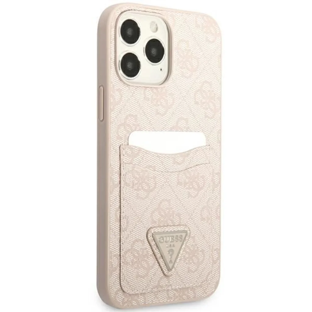 Kollekció: 4G Double Card Triangle Logo Típus: Kemény tok Anyag: TPU / PC / Eco-bőr Szín: Pink Kompatibilitás: iPhone 13 Pro/13 6.1"
