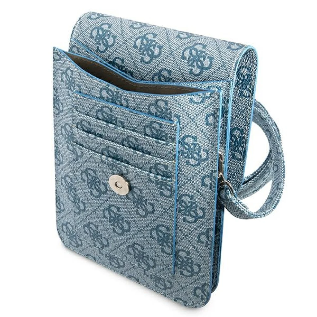 A Guess 4G Triangle kézitáska jellemzői közé tartozik a 4G logó, amely az egész bőr felületen nyomtatva látható. Pontos tervezésével és stílusos megjelenésével a Guess termékek előnyei közé tartozik, a táska a háromszög alakú Guess logóval van díszítve. Levehető vállpánttal, négy zsebbel kártyák/dokumentumok számára és két rekesszel rendelkezik telefon számára, amelyet mágneses zárral lehet zárni. A termék a Guess licenc alapján készült.