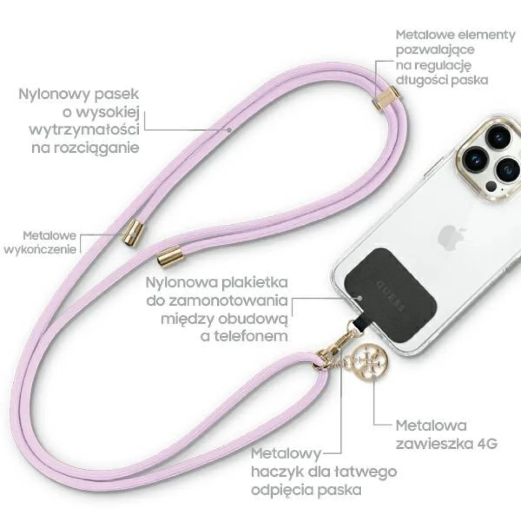 A Guess CBDY Cord univerzális telefontartó szíj egy rendkívül divatos és ízléses telefon kiegészítő, amelyet a híres Guess divatház tervezett. A telefontartó szíj lehetővé teszi, hogy megvédd okostelefonodat a sérülésektől vagy elvesztéstől, emellett mindig közel tarthatja a telefonodat. A kiegészítő nagy kényelmet és komfortot biztosít a telefon használata során. Gyakorlatias és hasznos kiegészítő, különféle viseleti módokkal, és használata a kreativitásodon múlik. Az állítható 150 cm-es hosszúság lehetőséget ad arra, hogy az egyéni preferenciáidhoz igazítsd - a hossza annyira rövidíthető, amennyire szükséges. A szíjat rögzíthetjük táskához, vállon hordva, csuklóra tekerve, nyakban, övbújtatóhoz kötve, vagy bármilyen más módon, ami eszedbe jut. A Guess CBDY Cord szíj egyszerűen telepíthető - csak helyezd be a különleges betétet egy horoggal a védőtok és a telefon közé. Az adapter vége karabinerrel a töltőport kivezetésén keresztül helyezkedik el, nem zavarja a működését, és teljesen kompatibilis a vezeték nélküli töltéssel. Az adapterhez rögzített karabiner lehetővé teszi a szíj gyors leválasztását a telefonról. A szíj univerzális és szinte minden okostelefonhoz illik. A szíj használatához szükséged van egy telefontokra. A CBDY Cord gyártásához kiváló minőségű nejlont használtak. Ez egy nagyon tartós és kopásálló anyag, könnyű és kellemes tapintású. Arany színű szerelvények a Guess logóval elegáns és rangos megjelenést kölcsönöznek ennek a kiegészítőnek. Egy elegáns arany medál a világhírű márka jelképével - a legendás 4G - teszi ezt a szíjat jellegzetessé, és szinte mindennel könnyedén kombinálható. A termék a Guess márka engedélyével készült. Gyűjtemény: CBDY Cord Típus: Telefontartó szíj Anyag: Nejlon / Fém Szín: Lila