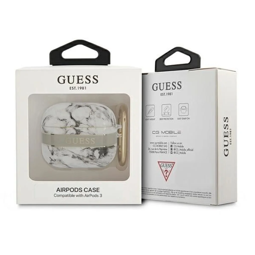 Az exkluzív tok védi az Apple AirPods töltőállomást, és mindent biztosít, amire szükség van ahhoz, hogy stílusosan és divatosan nézz ki. A Guess márvány tokok időtlen eleganciája eredeti dizájnjával lenyűgöz minden esetben. Teljes védelmet és biztonságot nyújt az AirPods számára. Ütés-, esés- és karcálló kivitel. A figyelemfelkeltő márvány minta az arany Guess logóval a tok színével egyező szalagon kiemeli mindennapi, egyedi stílusodat. A kiváló minőségű tok tökéletesen illeszkedik az eredeti AirPods tokhoz. A tok oldalán található egy praktikus arany karika, amely lehetővé teszi a tok például egy pórázhoz való rögzítését.