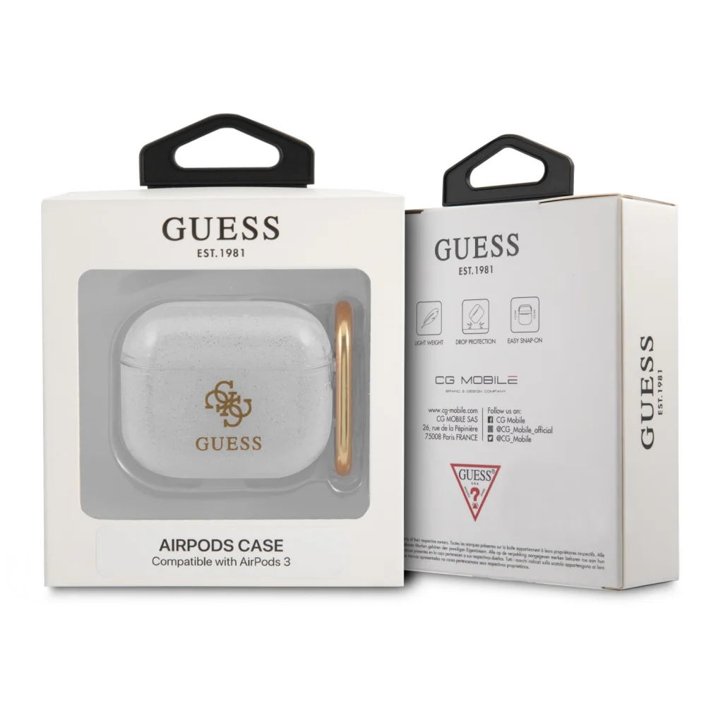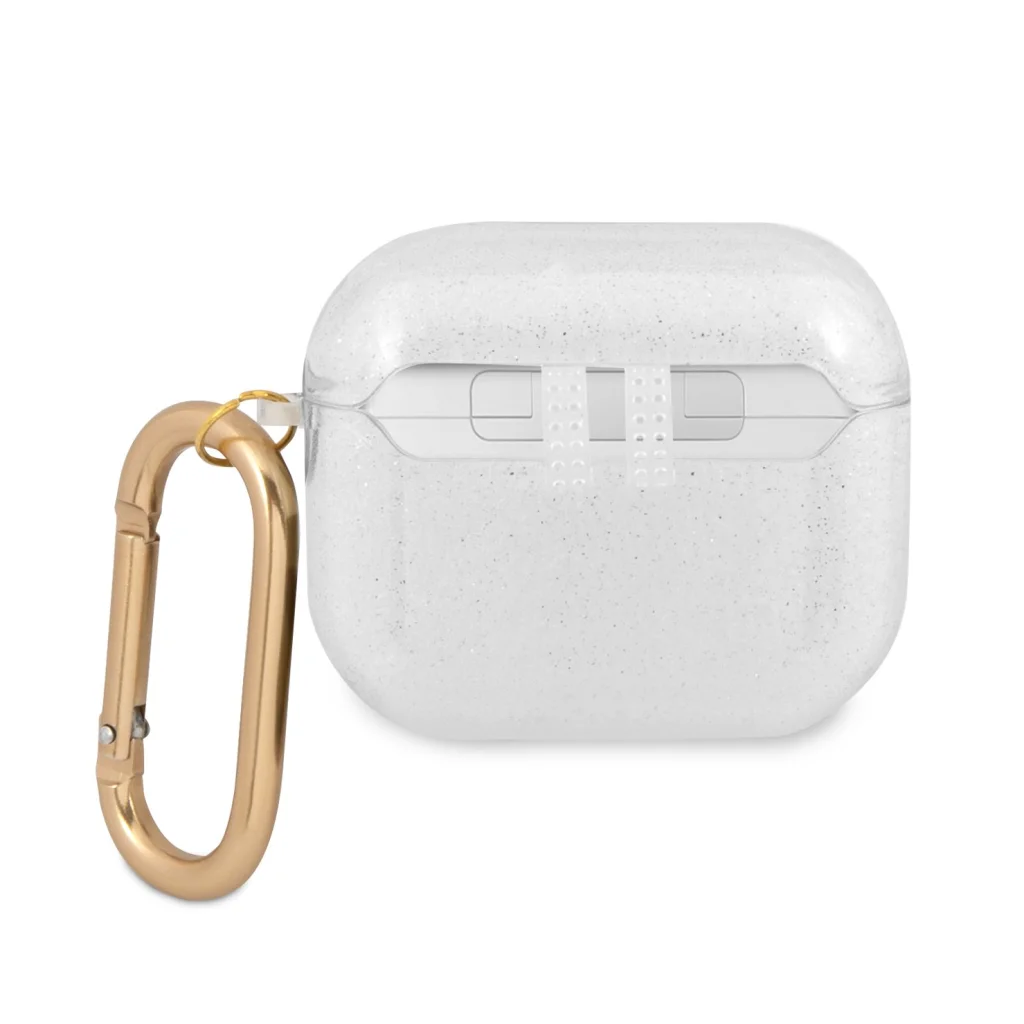 A Guess 4G TPU Glitter AirPods 3 tok egy kiváló minőségű, elegáns tok, amely védelmet nyújt a karcolásoktól. Tökéletesen védi az AirPods 3 készüléket, és hozzáférést biztosít az összes funkciógombjához, aljzatához és portjához anélkül, hogy korlátozná bármilyen funkcionalitását. Kiváló minőségű anyagokból készült. Mintáját Guess logó díszíti. Az eredeti dizájn nagyszerű divatos kiegészítővé teszi ezt a tokot.