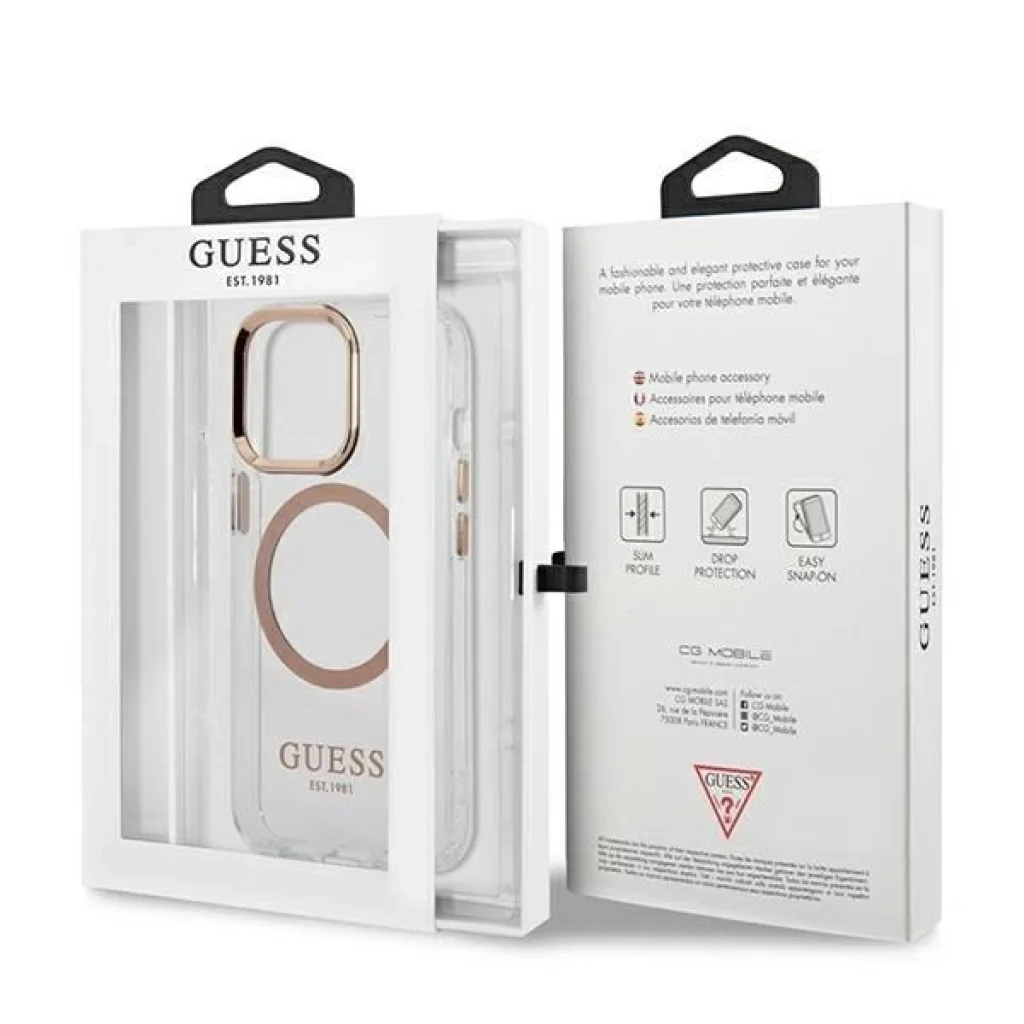 .boldy {font-size: 13pt; text-align: center; font-weight: bold} .h3ka {font-size: 15pt; font-weight: bold; text-align: center;} .tekst {font-size: 13pt; text-align: center;} .tabelka {border-collapse: collapse; width: 100%;} .tdka {border: 1px solid #dddddd;text-align: left;padding: 8px;} .trka:nth-child(even) {background-color: #dddddd;} Guess Metal Outline Magsafe Egyedi Guess tok sorozat, amely stílusos és divatos megjelenést biztosít. A Metal Outline Magsafe kollekció mindenkinek szól, aki egy egyedi tokot keres iPhone-ja védelmére. A tok gyártási folyamatában az IMD (In-Mold-Decoration) technológiát alkalmazták. A grafikákat forrón nyomják, majd egy finom TPU réteggel bevonják, amely ellenállóvá teszi őket a kopással szemben. A tok hátlapja átlátszó polikarbonátból, az élei pedig rugalmas poliuretánból készülnek, ami megkönnyíti a felhelyezést. A tok tökéletesen kiemeli iPhone-jának egyedi dizájnját, és arany elemekkel, például a lencsék körüli kerettel, gombokkal és a Guess logóval díszített. A tok mágneses gyűrűvel van felszerelve, amely kompatibilis a MagSafe vezeték nélküli töltővel, biztosítva a gyors és egyszerű töltést. A mágneses gyűrű tökéletesen illeszkedik a tok színéhez.