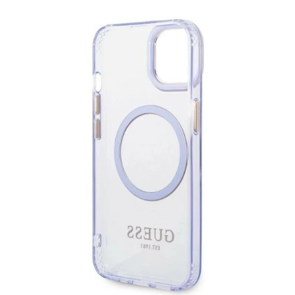 A tok tökéletesen hangsúlyozza iPhone-ja egyedi dizájnját, és ezüst elemekkel, például a lencsék körüli kerettel, a gombokkal és a Guess logóval díszítették. A tok mágneses gyűrűvel rendelkezik, amely kompatibilis a MagSafe vezeték nélküli töltővel a gyors és könnyű töltés érdekében. A mágneses gyűrű tökéletesen illeszkedik a tok színéhez.