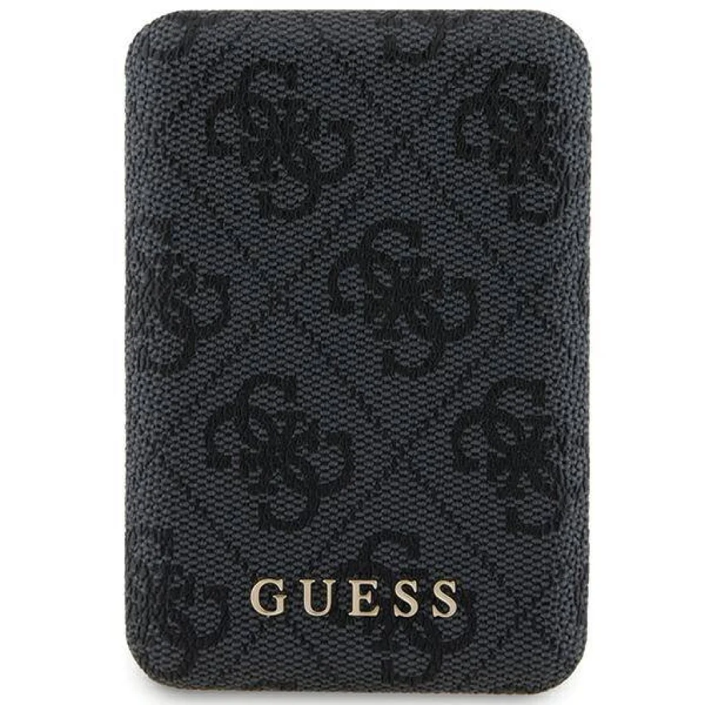 Guess Indukciós Powerbank 15W GUPB5FP4EMGK 5000mAh fekete/fekete 4G Bőr Fém Logó MagSafe